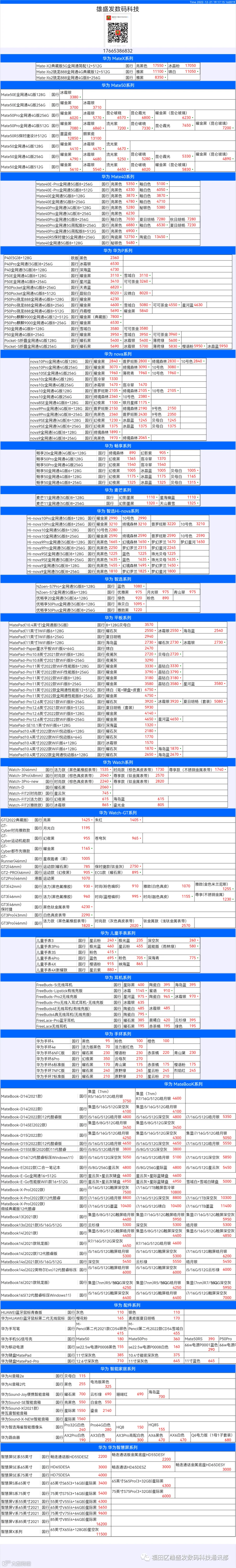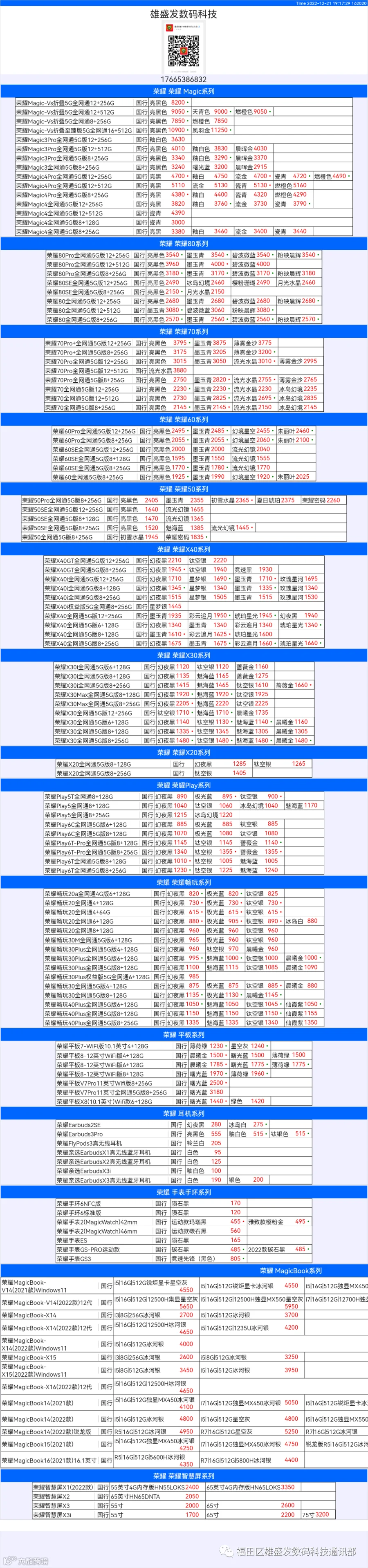 新机报价【2022年12月21日】华为   荣耀 报价 芯烨微 电子科技