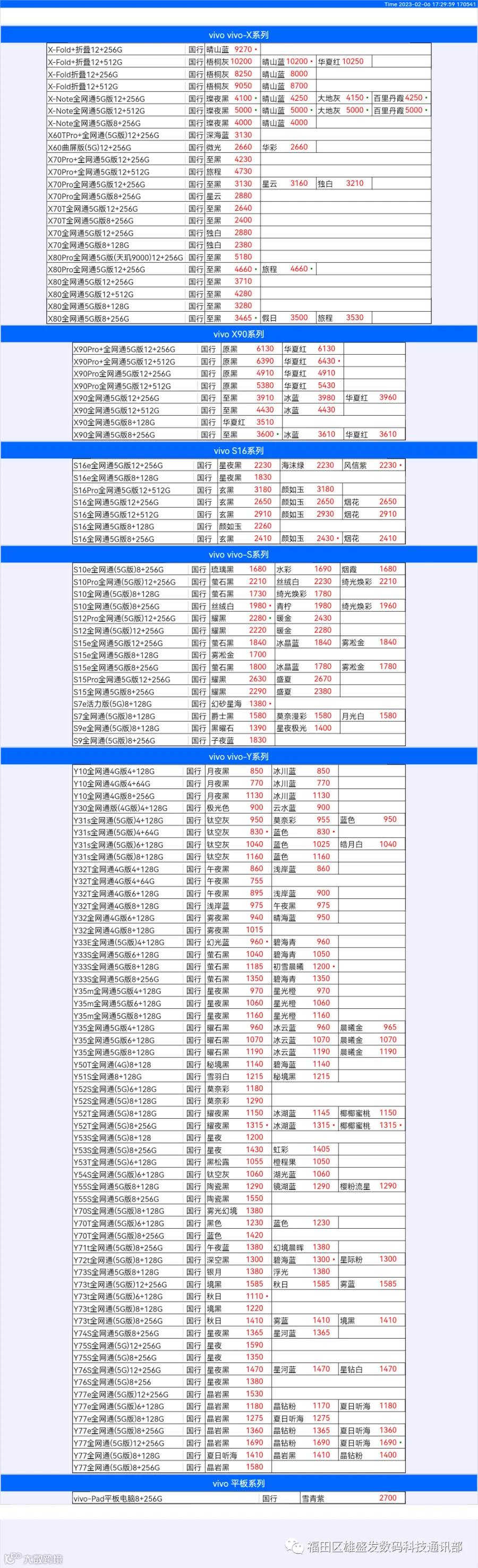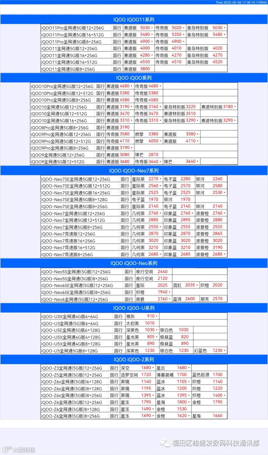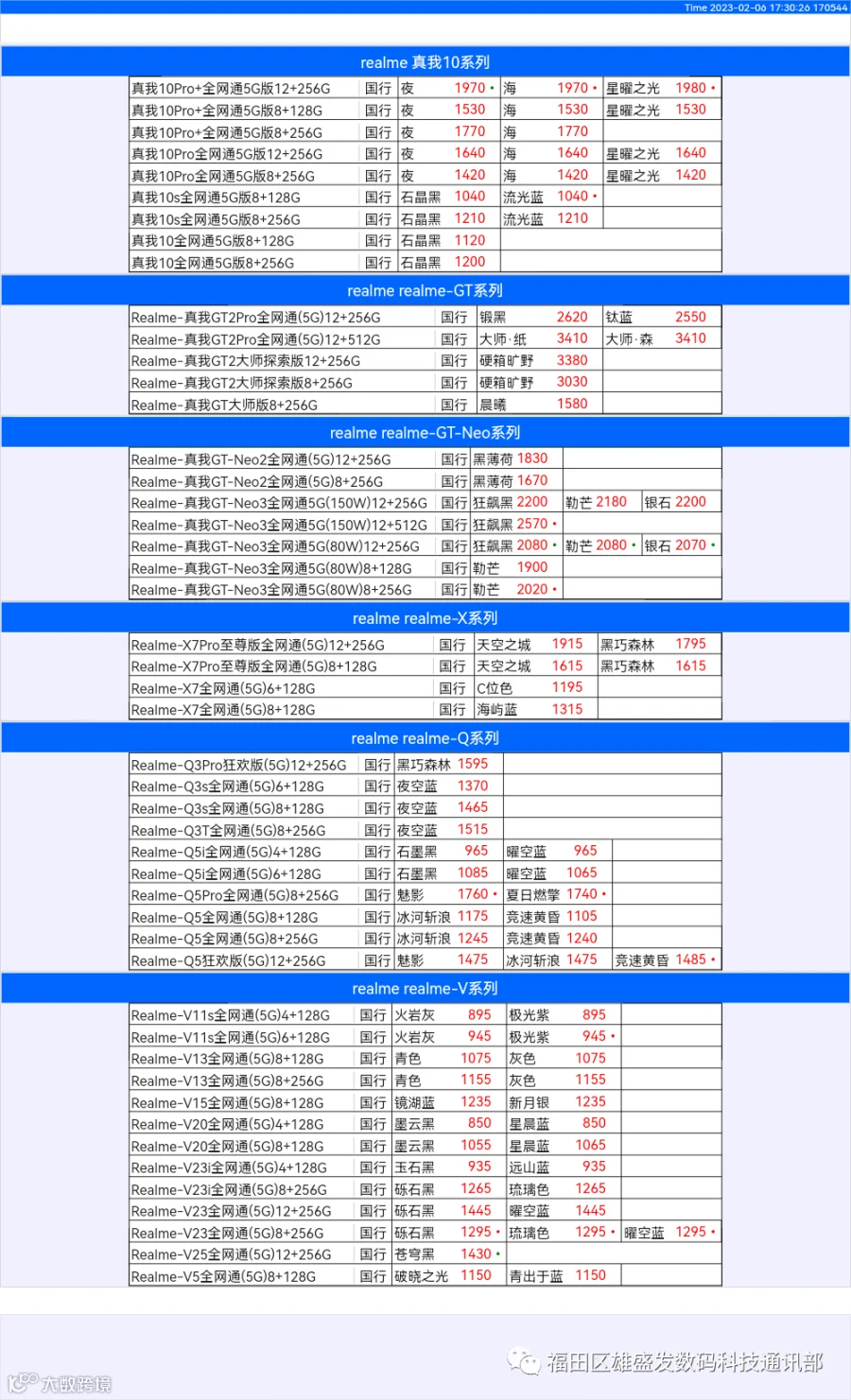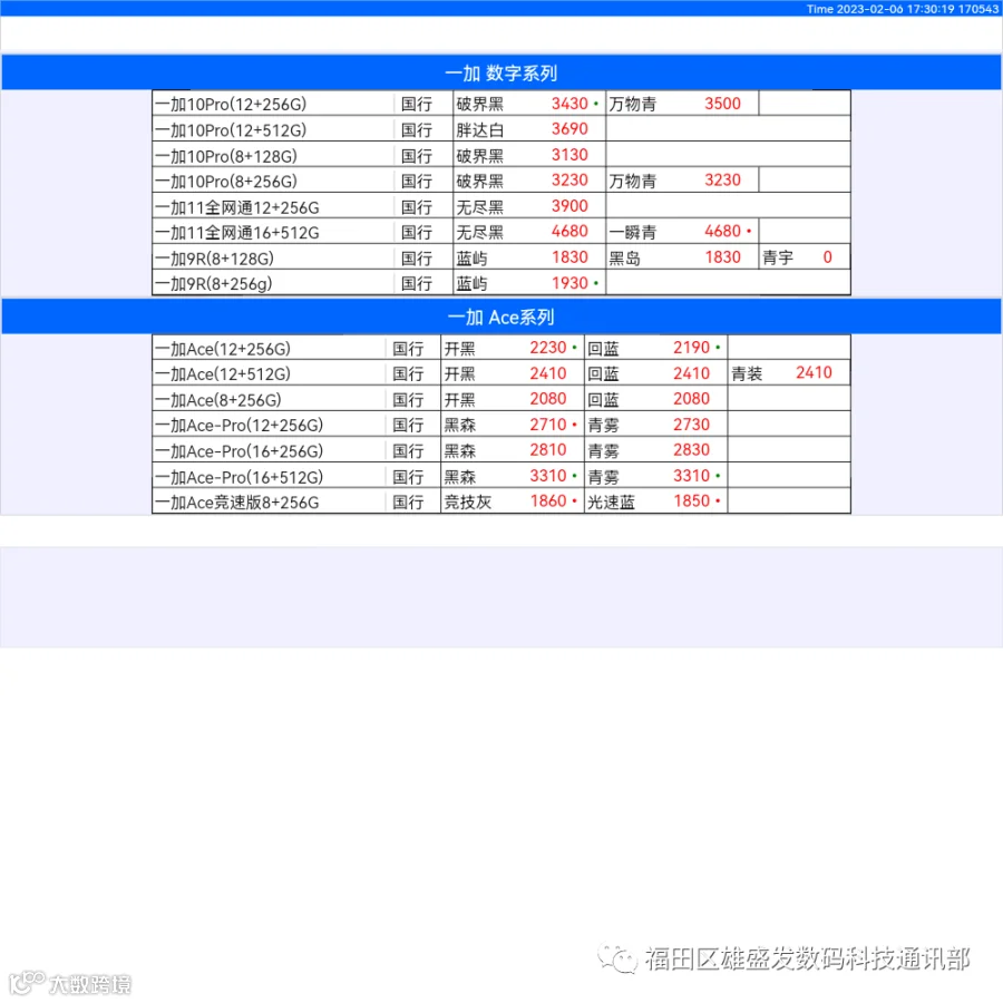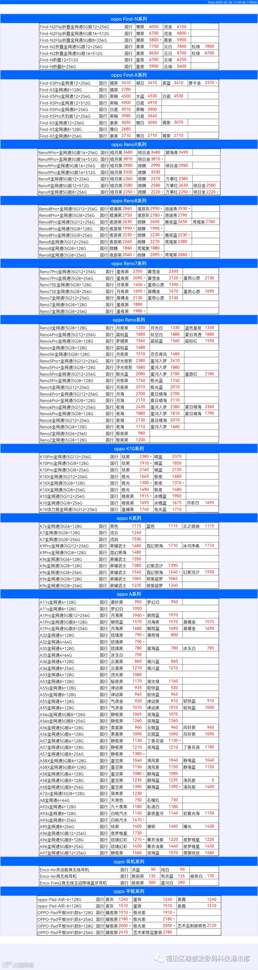新机报价【2023年2月5日】OPPO   VIVO  IQOO   一加   真我 芯烨微 电子科技