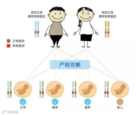 世界上已经发现了超过5600种罕见病,其中绝大多数是常染色体隐性遗传病。患有这类遗传病的孩子,绝大多数来自完全健康、且没有家族病史的父母。只不过,他们的父母各携带了一个疾病的致病突变,是疾病的携带者。携带者本人并不会发病,但当两个携带者结婚生孩子时,却有1/4的可能性把各自的致病突变遗传给下一代。