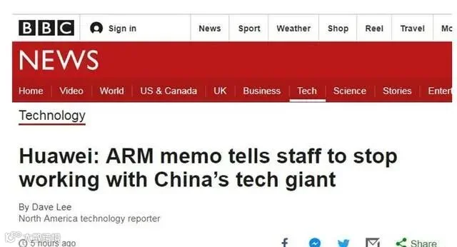 2019年,北美制裁华为公司时,BBC声称获得的内部文件,ARM将暂停与华为的全部业务。该内部文件显示,ARM指示员工暂停与华为及其子公司的 “所有在履行的合同、授权许可证和任何在商谈中的合同”,以遵守美国的贸易禁令,因为其设计包含 “源自美国的技术”。