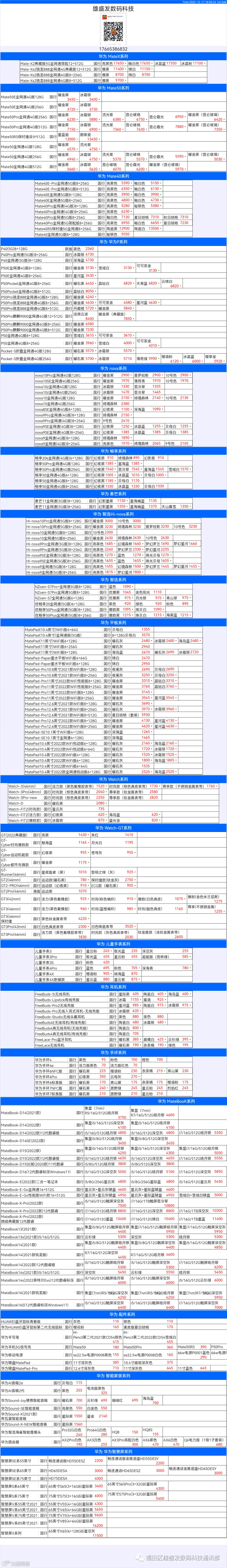 新机报价【2022年12月17日】华为   荣耀 报价 芯烨微 电子科技