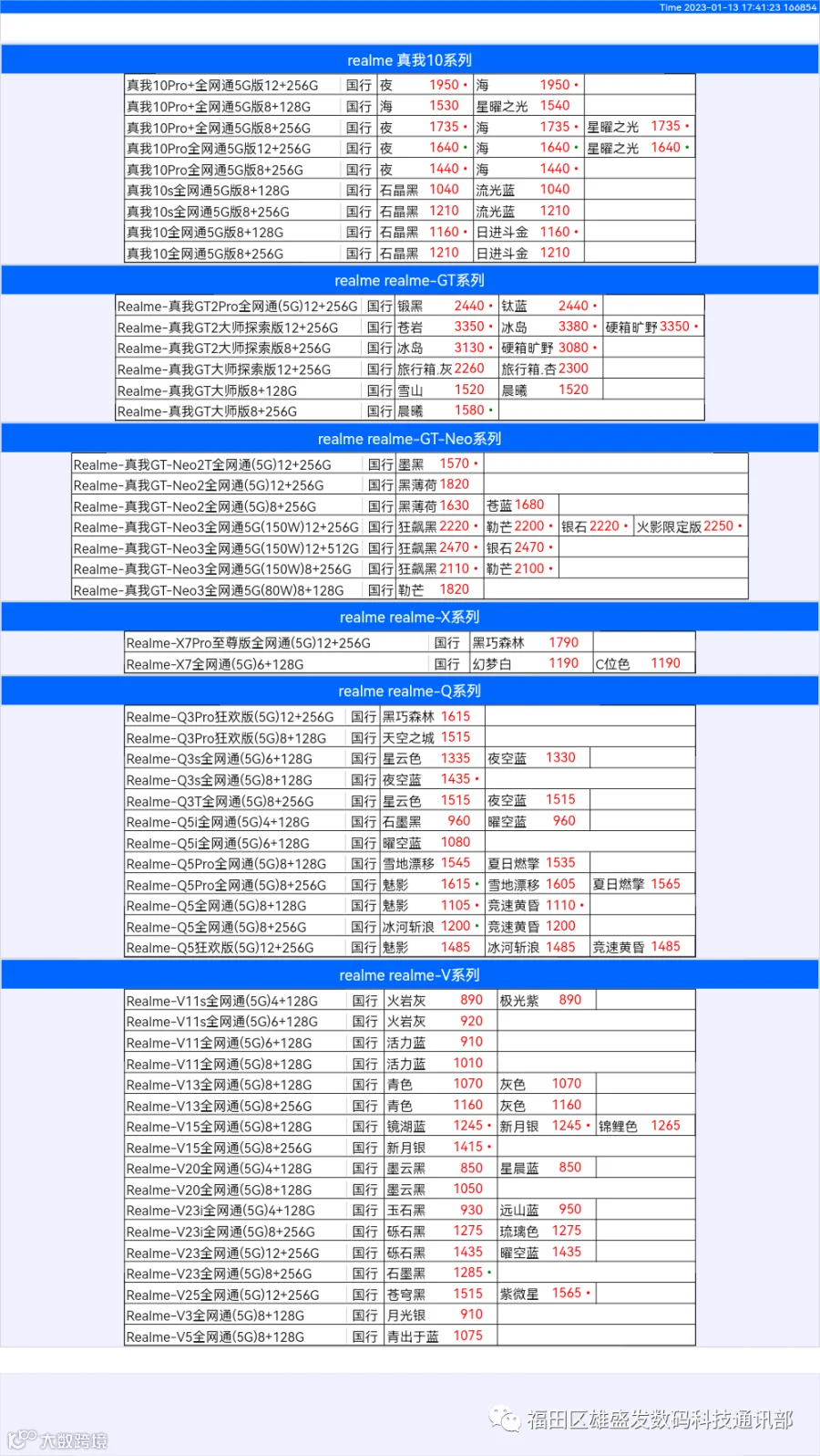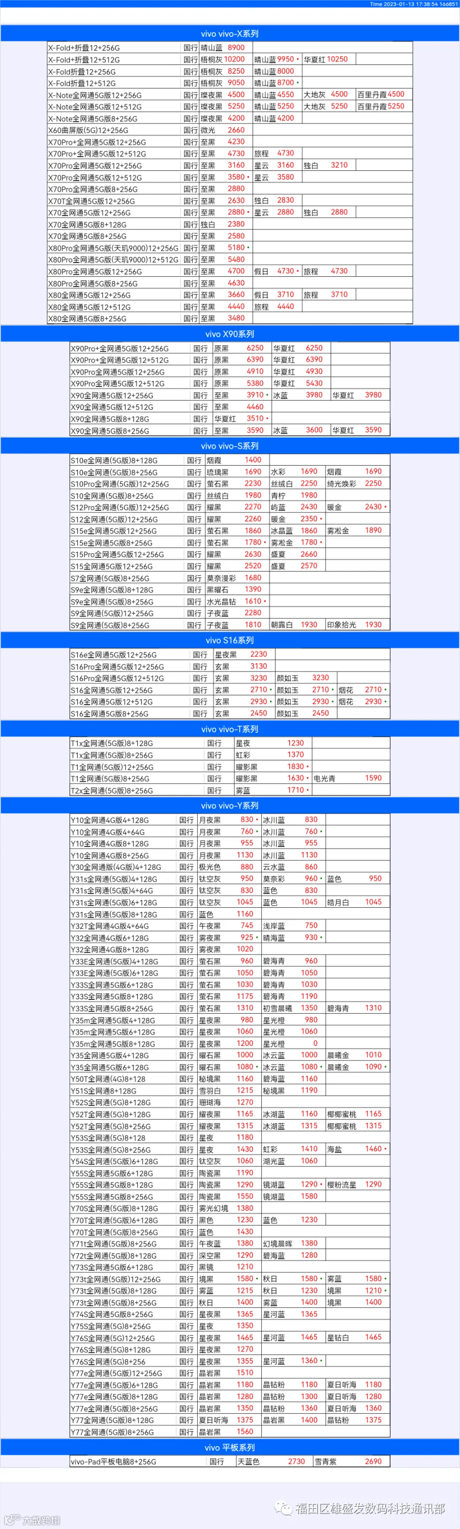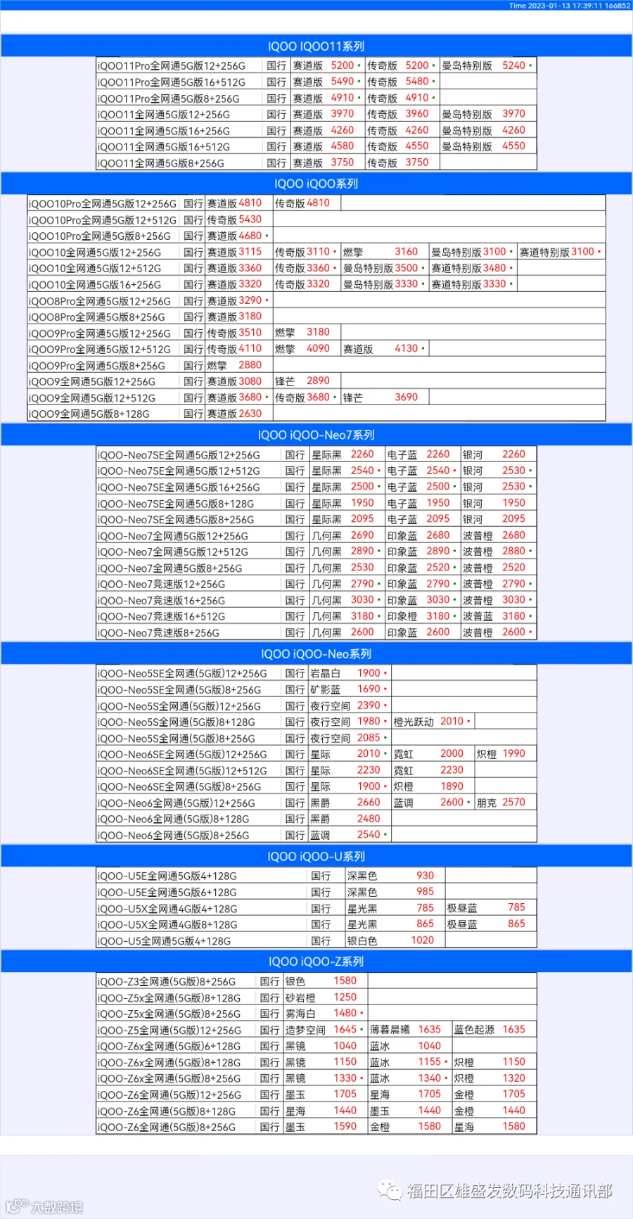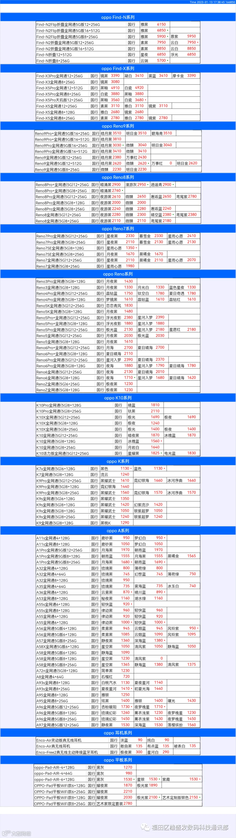 新机报价【2022年1月13日】OPPO   VIVO  IQOO   一加   真我 芯烨微 电子科技