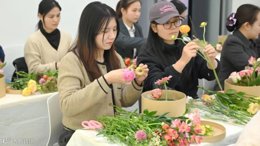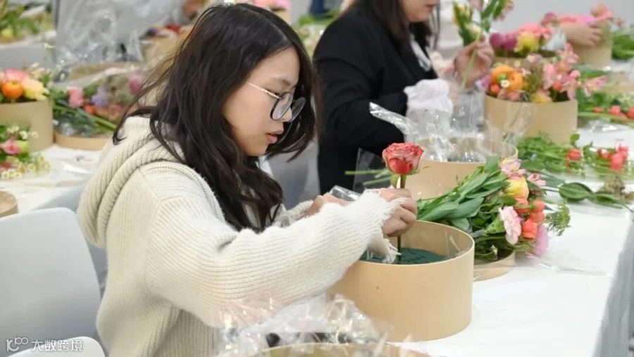 在老师的指导下,大家纷纷开始了花盒创作。从取材构思、修剪塑形、层次构建、细节点睛等细细斟酌,为自己定制一款错落有致、创意十足的惊喜花盒。每一枝花卉的自由组合都形成了专属的“花语密码”。