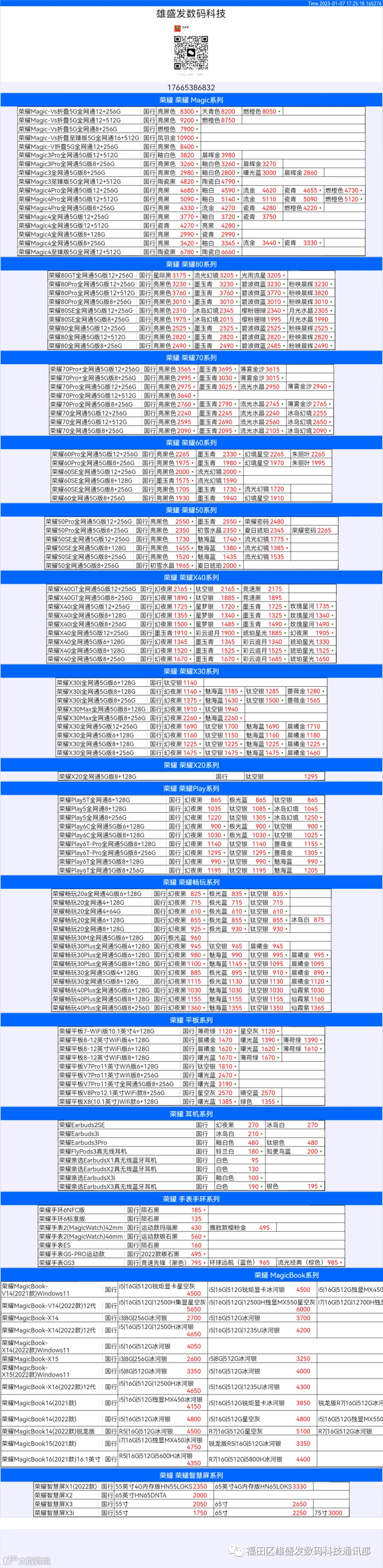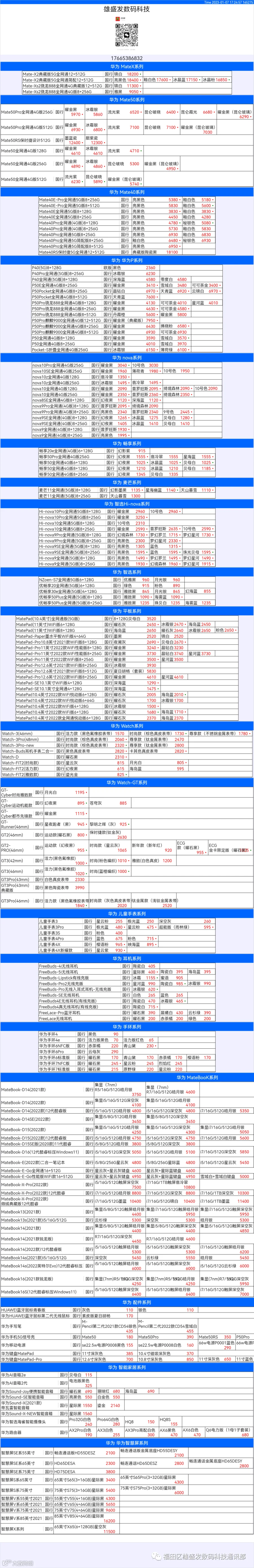 新机报价【2022年1月7日】华为   荣耀 报价 芯烨微 电子科技