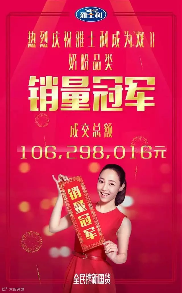 2、1.06亿元!双11奶粉品类雅士利创纪录夺冠!
