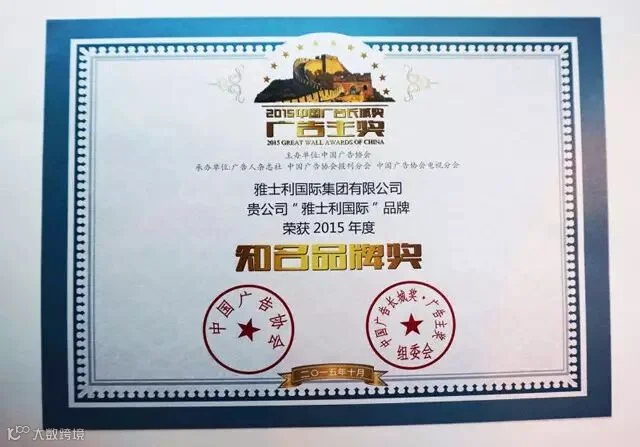 雅士利在众多品牌中脱颖而出,荣膺“2015中国广告长城奖•广告主奖” 之【营销传播金奖】&【知名品牌奖】双项大奖,这是业界对雅士利在提升品牌知名度、美誉度方面的尝试和努力给予肯定。