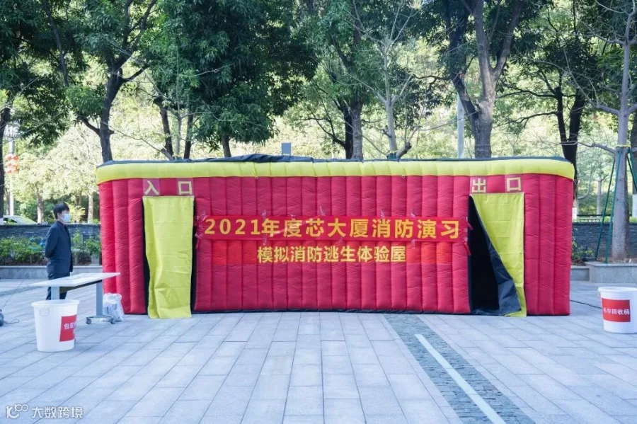 演习现场布置了消防逃生屋,通过逃生屋的体检模拟火场逃生的过程,各楼层客户积极参与其中,深刻领悟了火灾事故现场的逃生技巧。