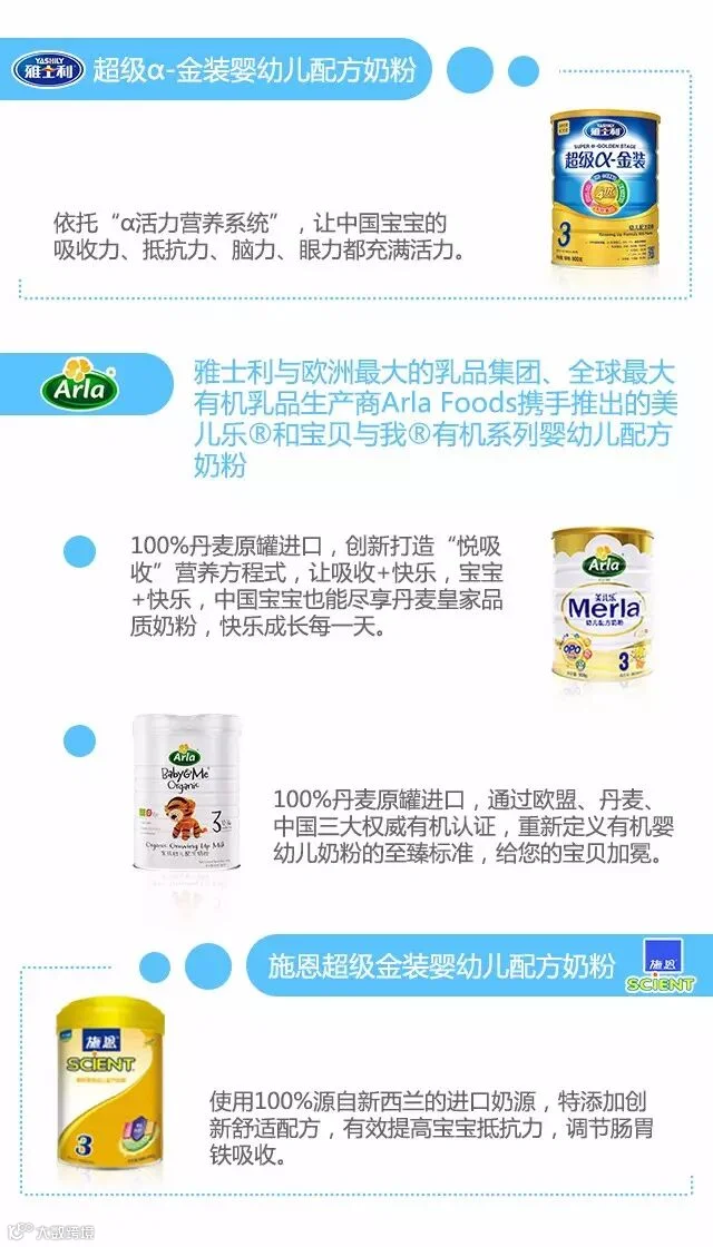 雅士利集团作为全球规模最大的孕婴童展2015CBME中国孕婴童展将于7月22—24在上海新国际博览中心盛大举行。届时,雅士利集团将携四大系列产品超级α-金装、施恩超级金装、Arla美儿乐®、Arla宝贝与我®华丽登场,向众多消费者展示全新的品牌故事。