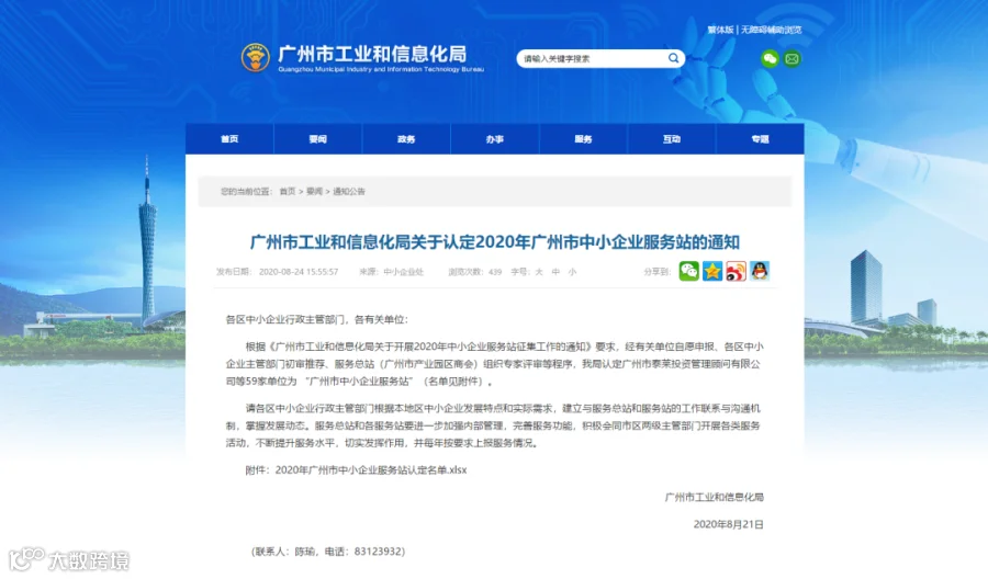 2020年广州市中小企业服务站 。