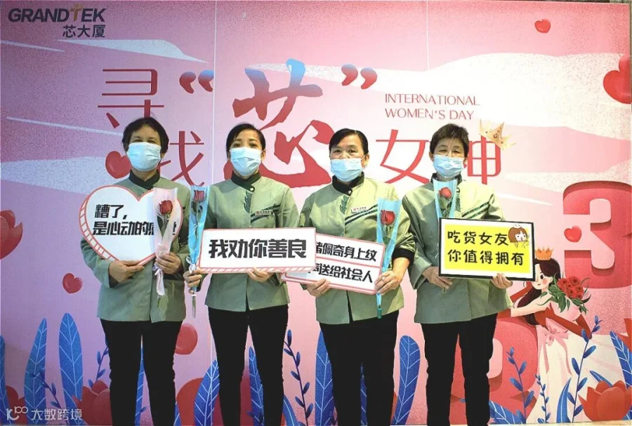 2020年3月6日早上,由广州芯大厦物业服务中心、乐飞社工组织的“寻找‘芯’女神”系列活动 在芯大厦顺利举行。芯大厦近150人女性职工在当天上班时间均收到了来自芯大厦精心准备的玫瑰花束和各式节日温馨小礼品。