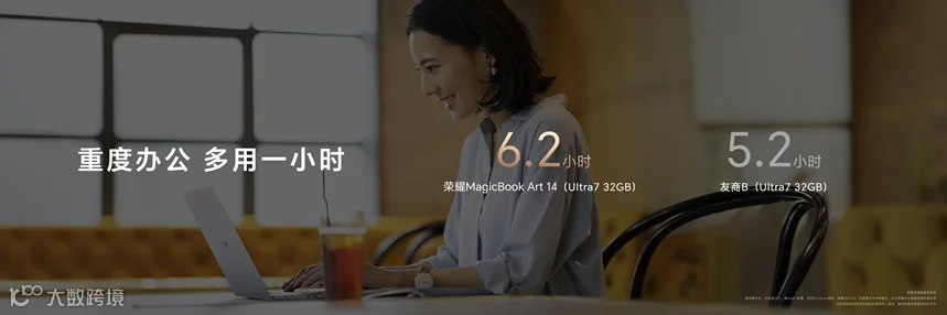 荣耀MagicBook Art 14最高搭载英特尔® 酷睿™Ultra 7 155H处理器,在平台级AI使能的OS Turbo 3.0技术加持下,以智慧感知使用场景,实现对底层资源的全面精细化调度,使其在性能释放与持久续航中找到了最优解。在长时间运行多个大型文档、办公软件或者视频会议等高负载重度办公场景下,荣耀MagicBook Art 14依然达到6.2小时的超长续航,比友商多用1小时,全面保障用户日常使用的流畅性与持久性。与此同时,日常场景下的功耗最高下降28.5%,响应速度最高提升30%,带来行业领先的续航和性能体验。