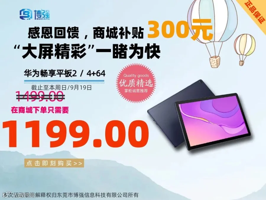 商城补贴抢好礼,华为畅享平板2限时抢购活动,截止到9月19日!!