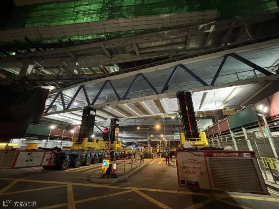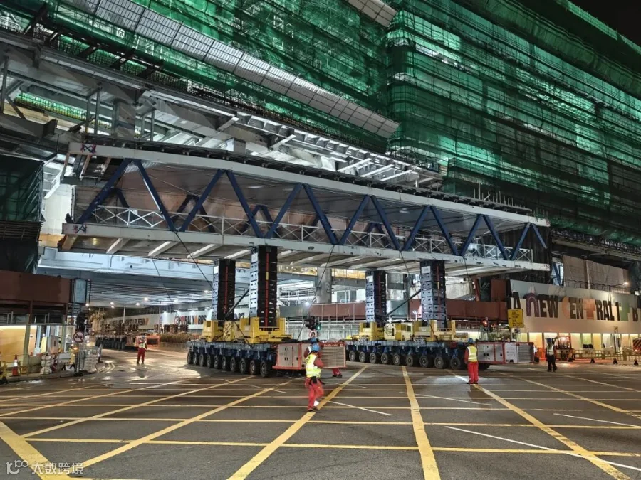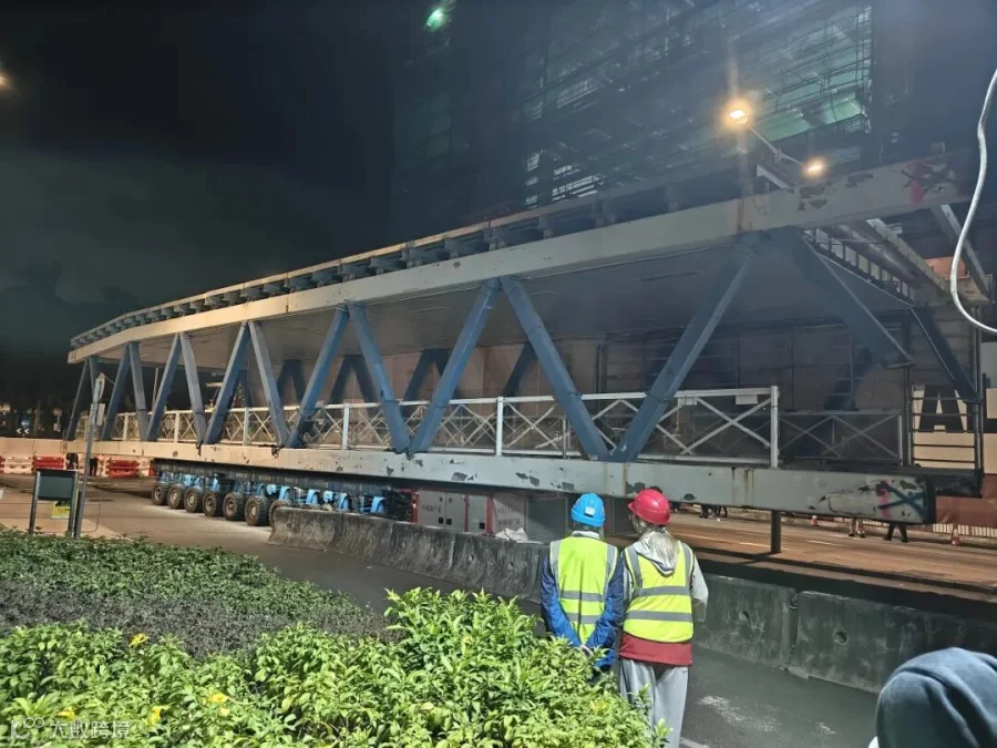 面对城区施工空间狭小、交通疏导压力大、安全管控要求严苛等多重挑战,项目团队采用更智能、更低碳的SPMT结合自动叠加顶升落位工法,高效完成人行天桥构件整快速拆除,助力香港城市基础设施更新升级。