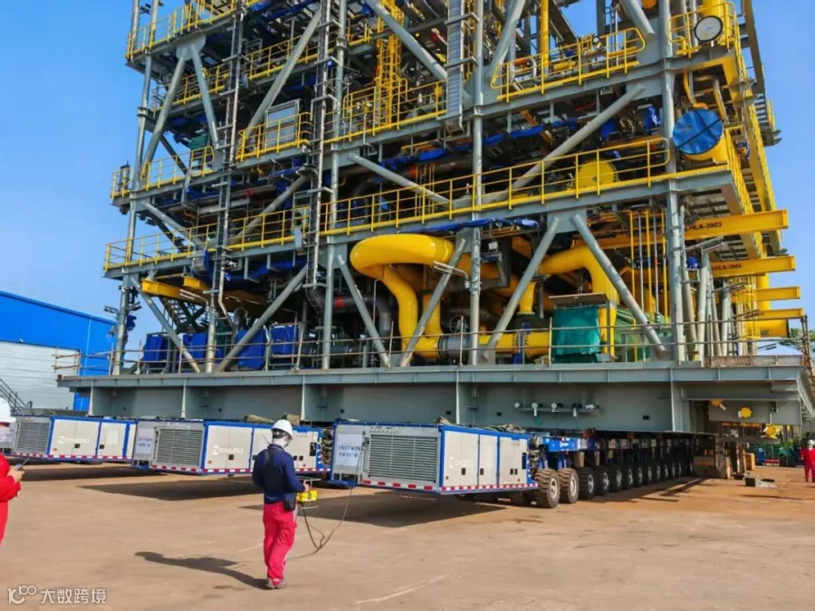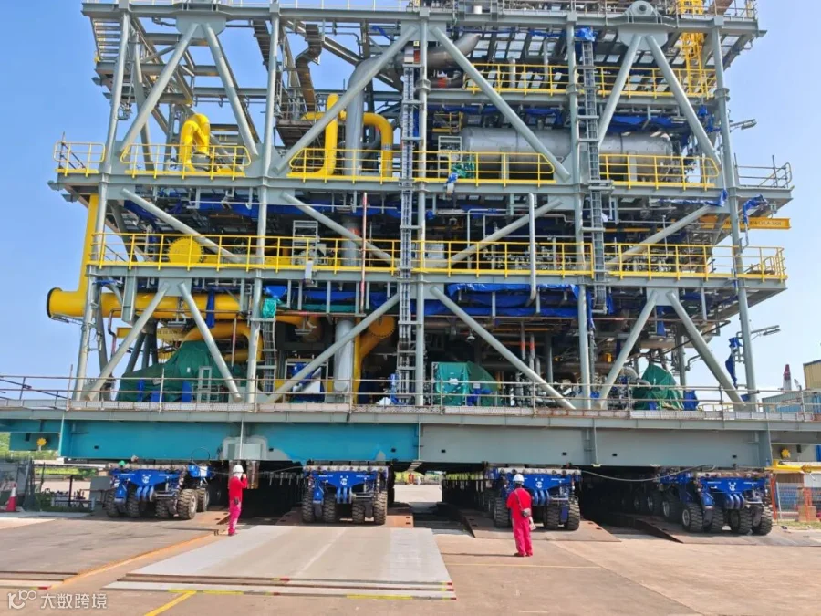 针对 FPSO 大型模块尺寸大、吨位重、转运精度要求极高的特点,广瀛团队采用精细化项目管理与高标准操作,以高标准服务赢得新加坡客户认可,彰显全球化工程服务能力。