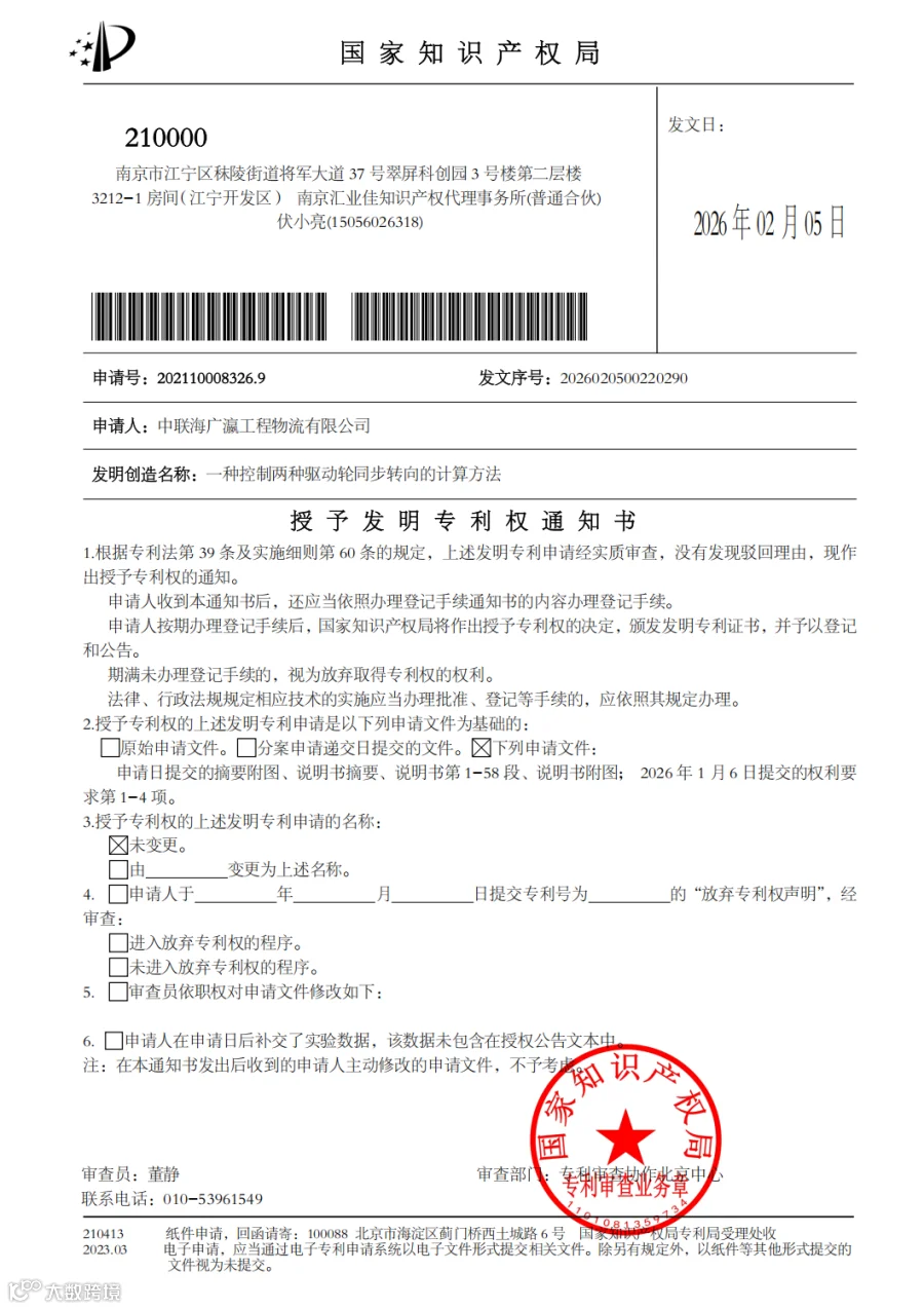一季度,公司技术研发再结硕果,成功获得两项重载移运相关发明专利,从核心技术层面为工程物流作业赋能,进一步实现技术创新突破,为项目高效推进与业务创新发展提供坚实技术支撑。