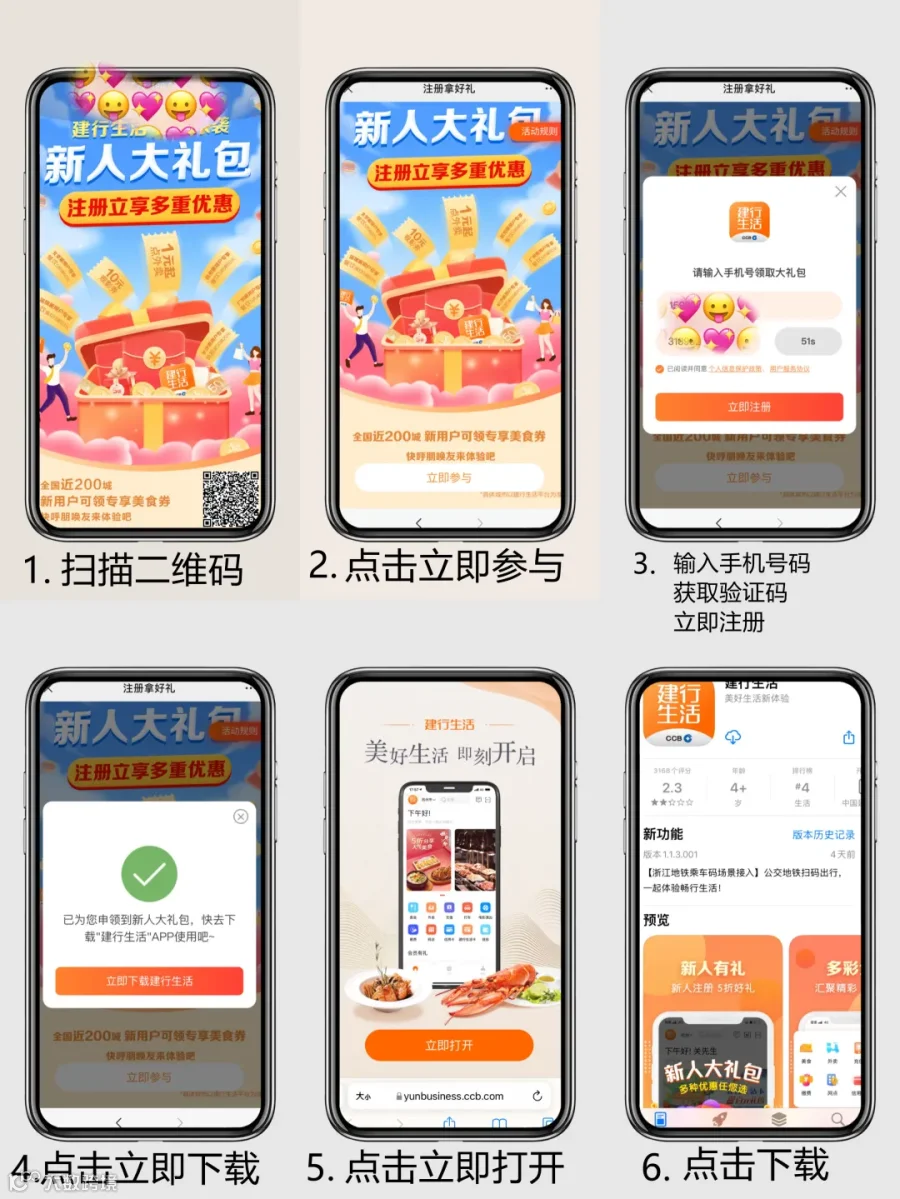 完成建行生活注册→绑定银行卡,并完成实名认证→扫码用券。