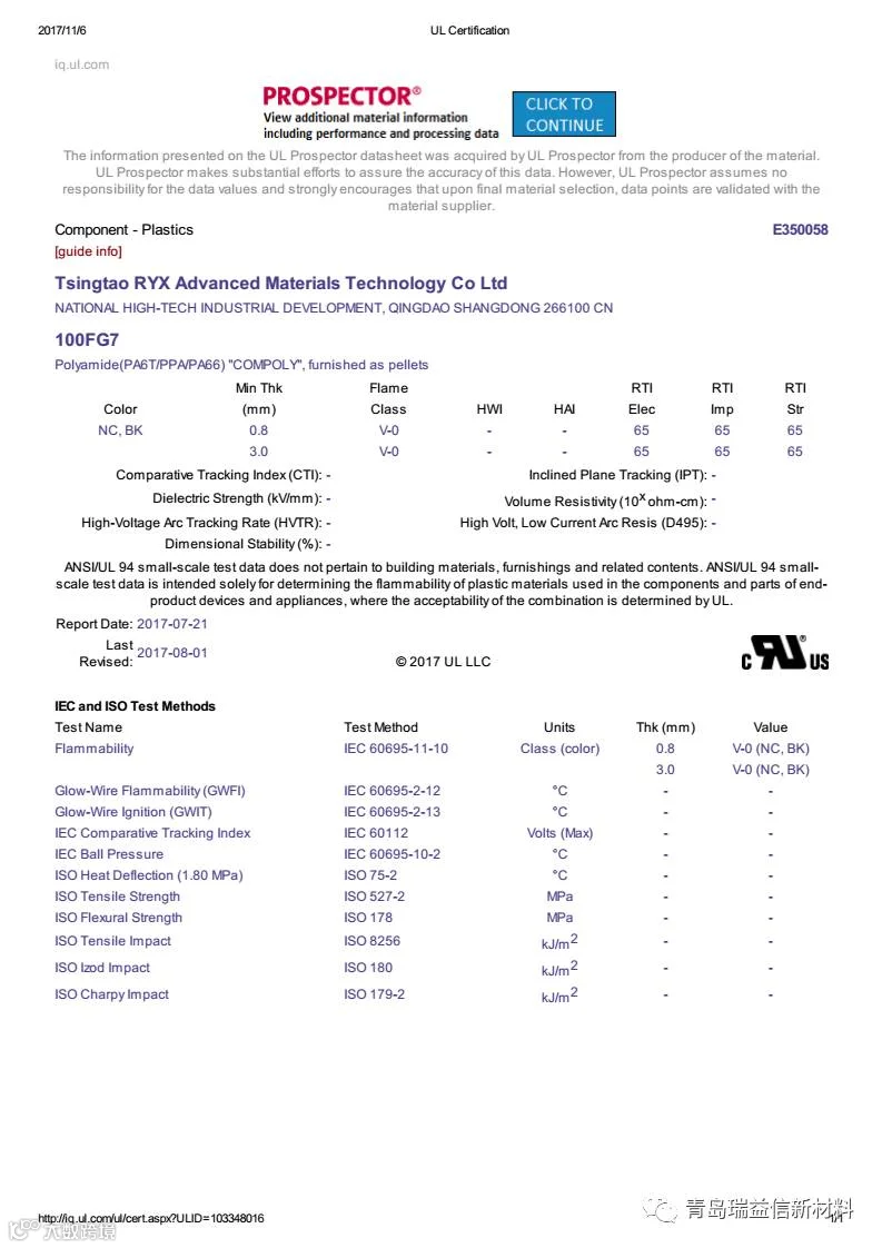 阻燃高温尼龙100FG7,尼龙200FG 为ul94 V0 黄卡认证产品。