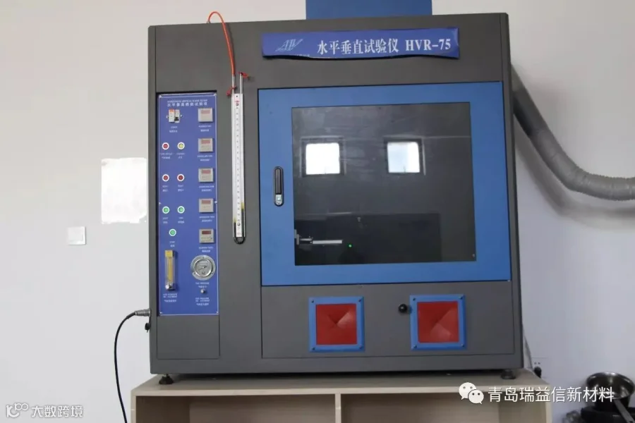 V-1:对样品进行两次10秒的燃烧测试后,火焰在30秒内熄灭。不能引燃30cm下方的药棉。