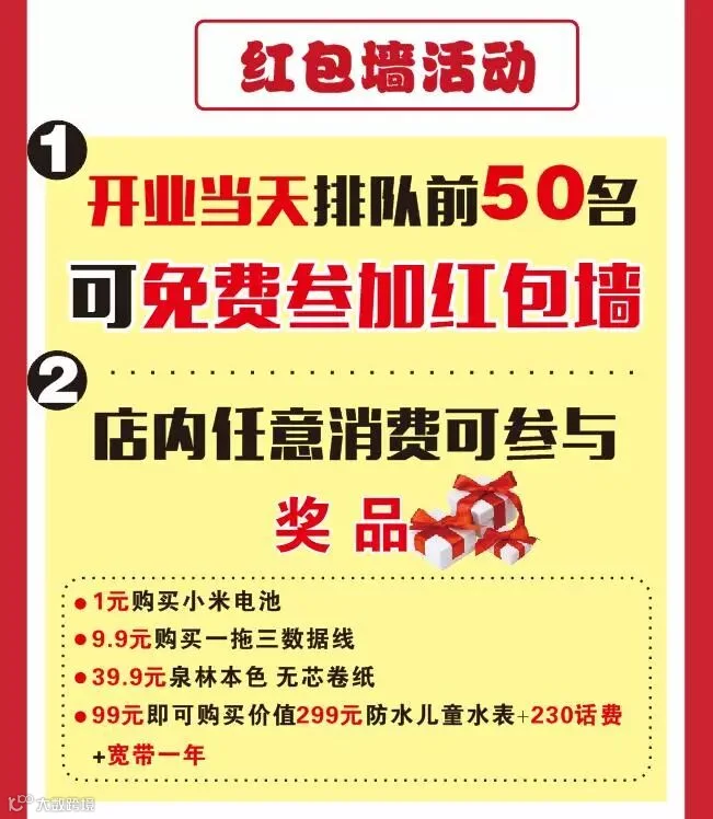 店内任意消费可参与红包墙活动: