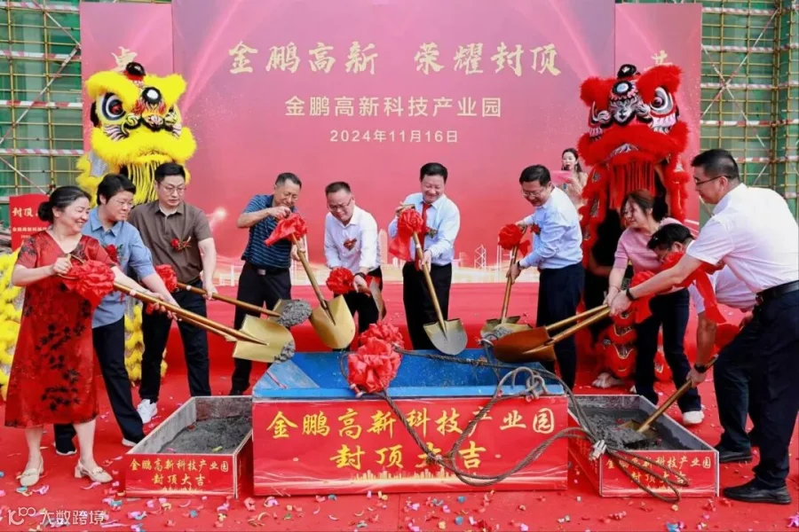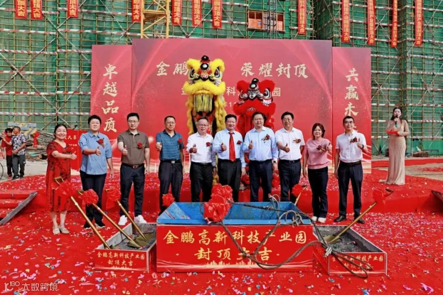 在金秋送爽、硕果累累的季节里,金鹏集团迎来了一个重要的里程碑时刻。11月16日,随着屋面最后一块顶板混凝土的成功浇筑,金鹏高新科技产业园项目在工地现场举行了隆重的封顶仪式。公司领导、政府领导、监理公司及我司领导齐聚一堂,共同见证了这个荣耀的时刻!