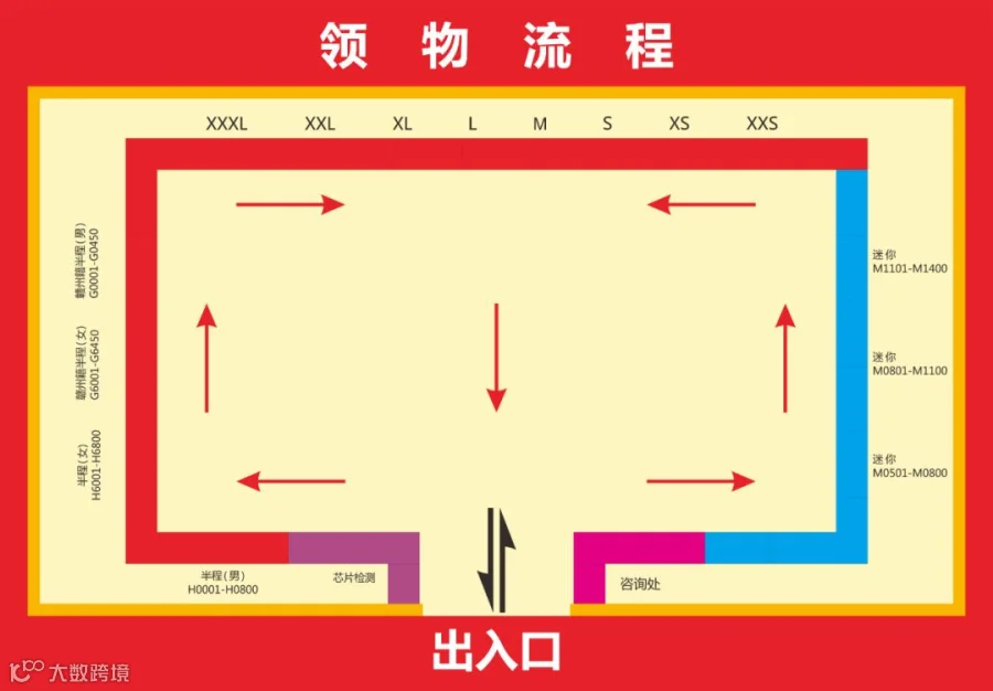 个人领物: 携带身份证原件、参赛物品领取单到对应的窗口排队→提交领物相关资料,核对个人信息→工作人员核对信息无误后发放对应项目物品并收回参赛物品领取单→选手领取参赛物品→确认签字。