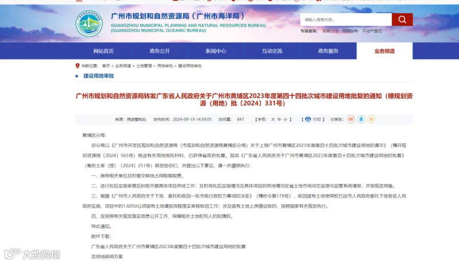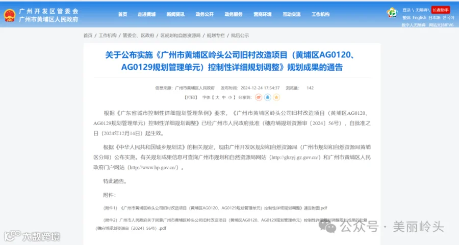 12月14日岭头公司旧村改造项目(黄埔区AG0120\AG0129规划管理单元)控制性详细规划调整规划成果获得广州市人民政府批复。