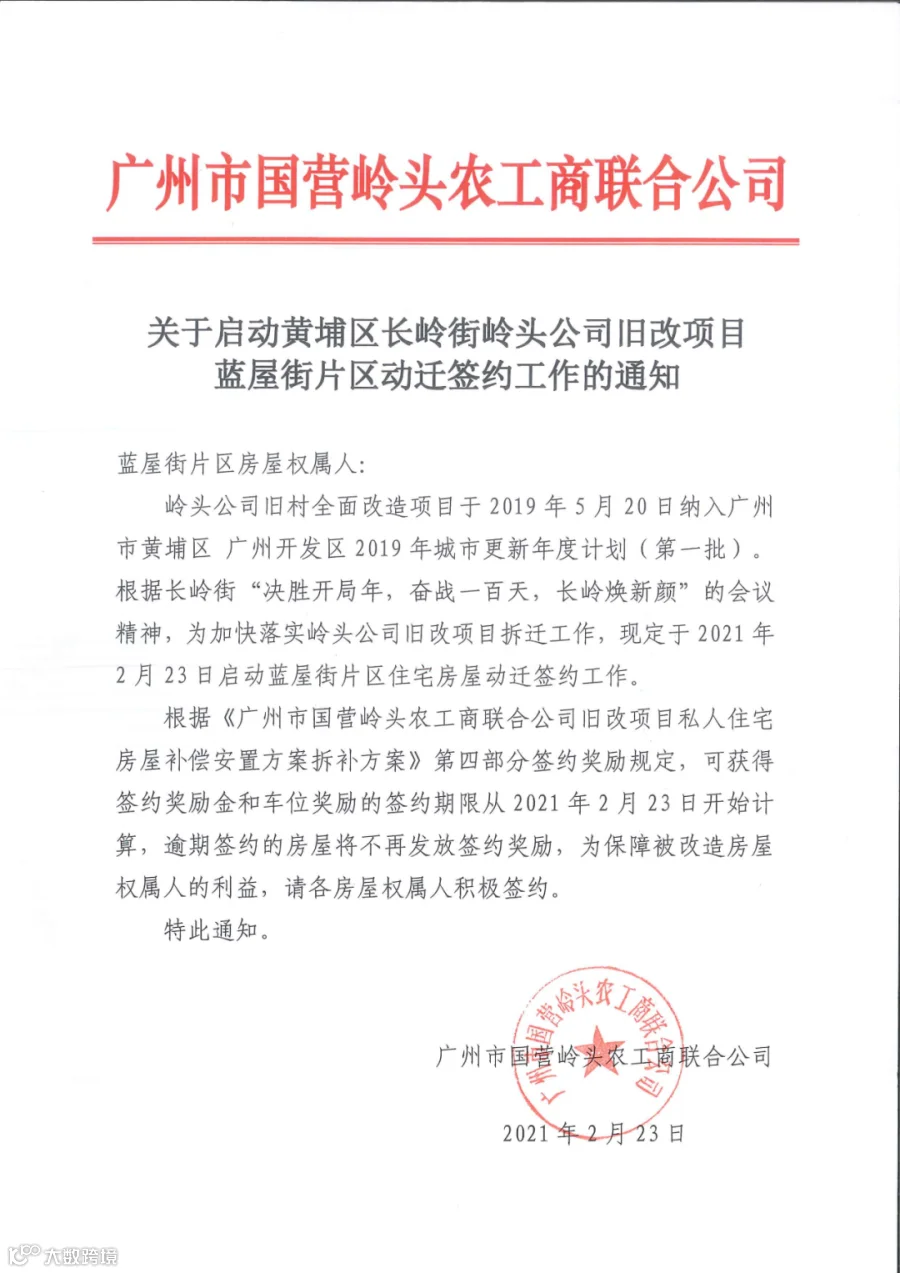 (1)签约奖励金:如被改造房屋权属人在所属片区启动签约后3个月内签订《广州市国营岭头农工商联合公司旧改项目补偿安置协议》的,可获得每栋主体房屋20000元的按时签约奖励金,具体以双方签订的补偿协议约定为准。(启动签约时间以实际通知为准)