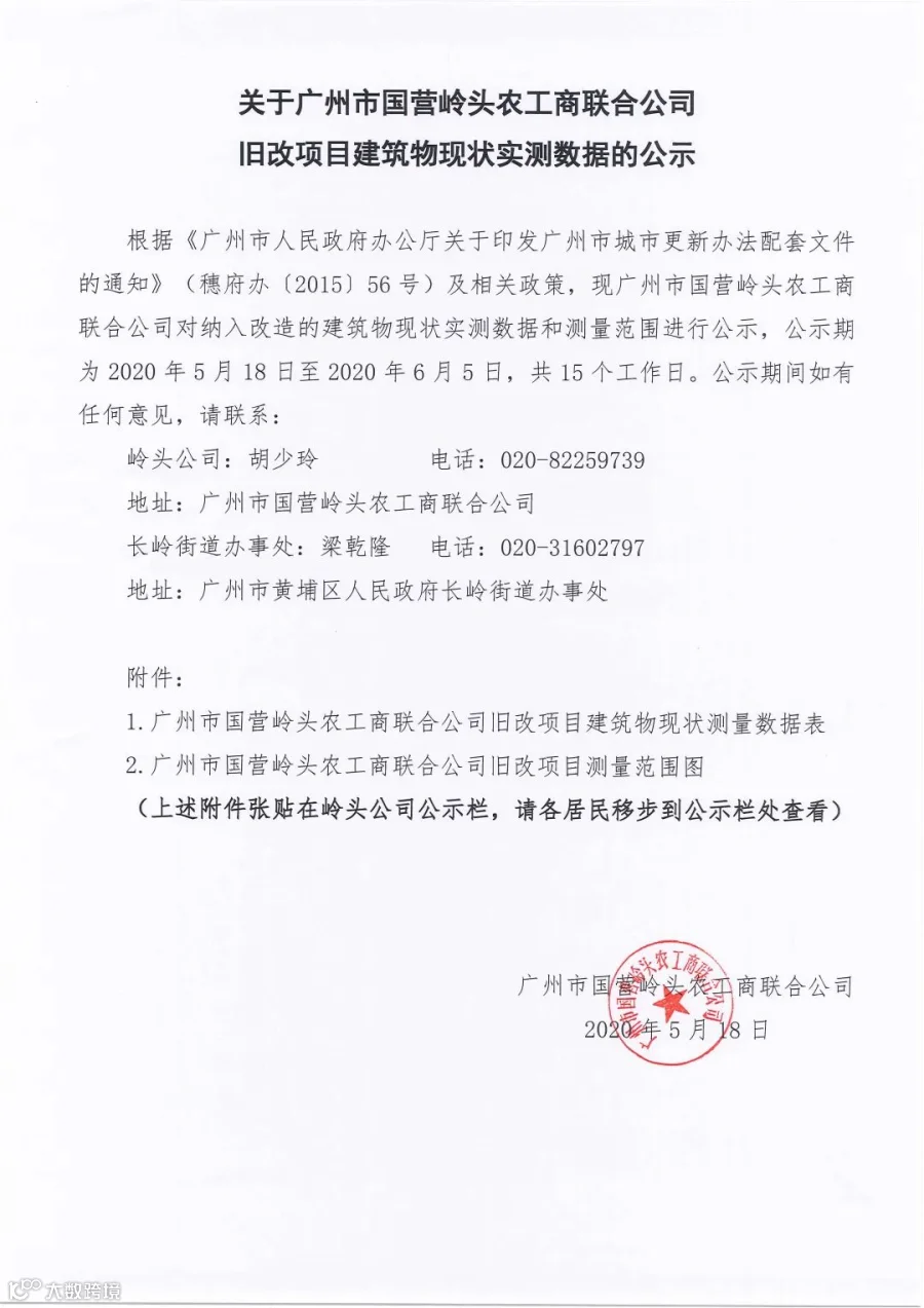 旧改项目建筑物现状实测数据的公示