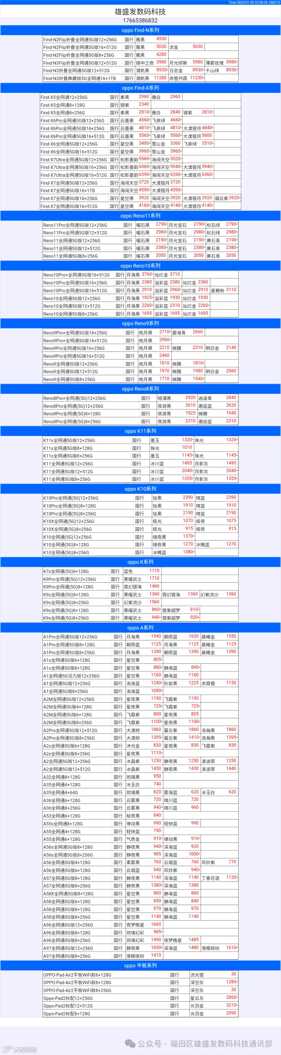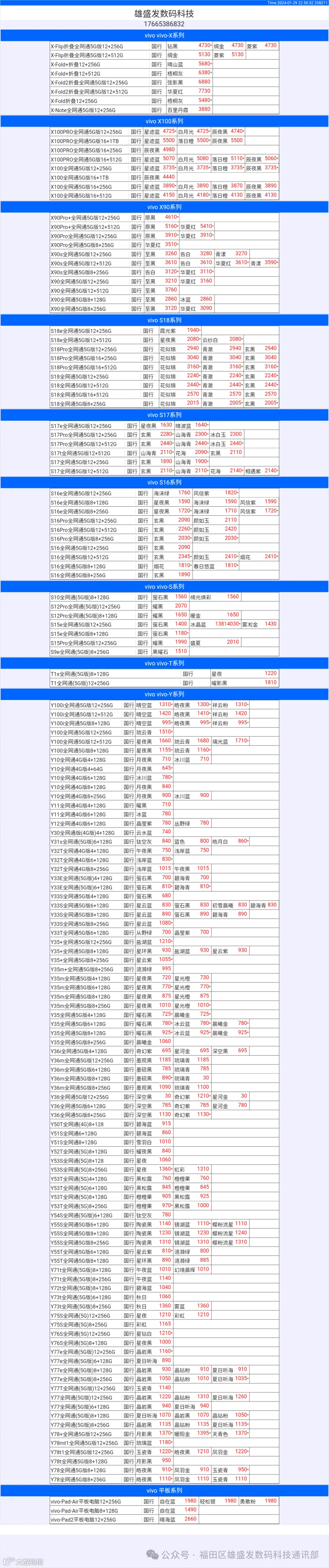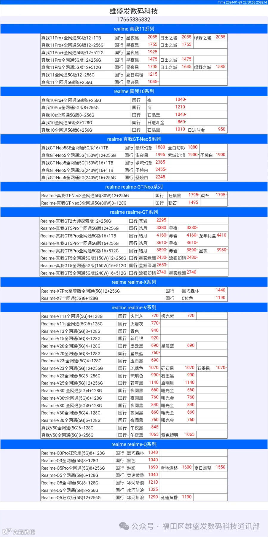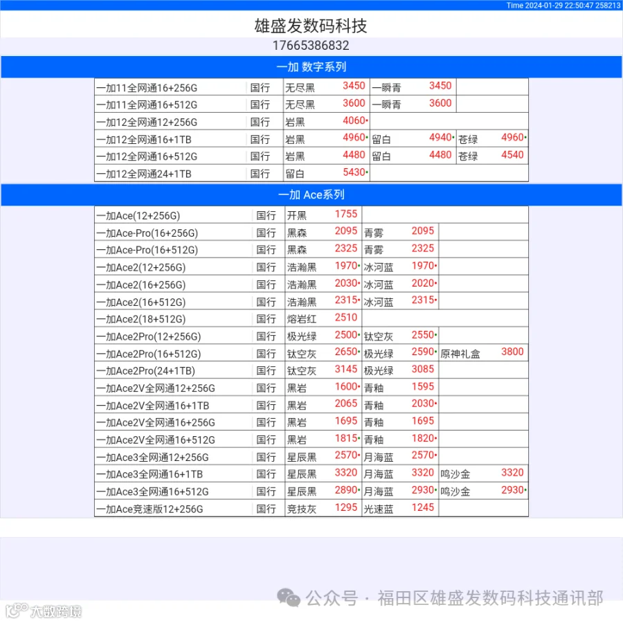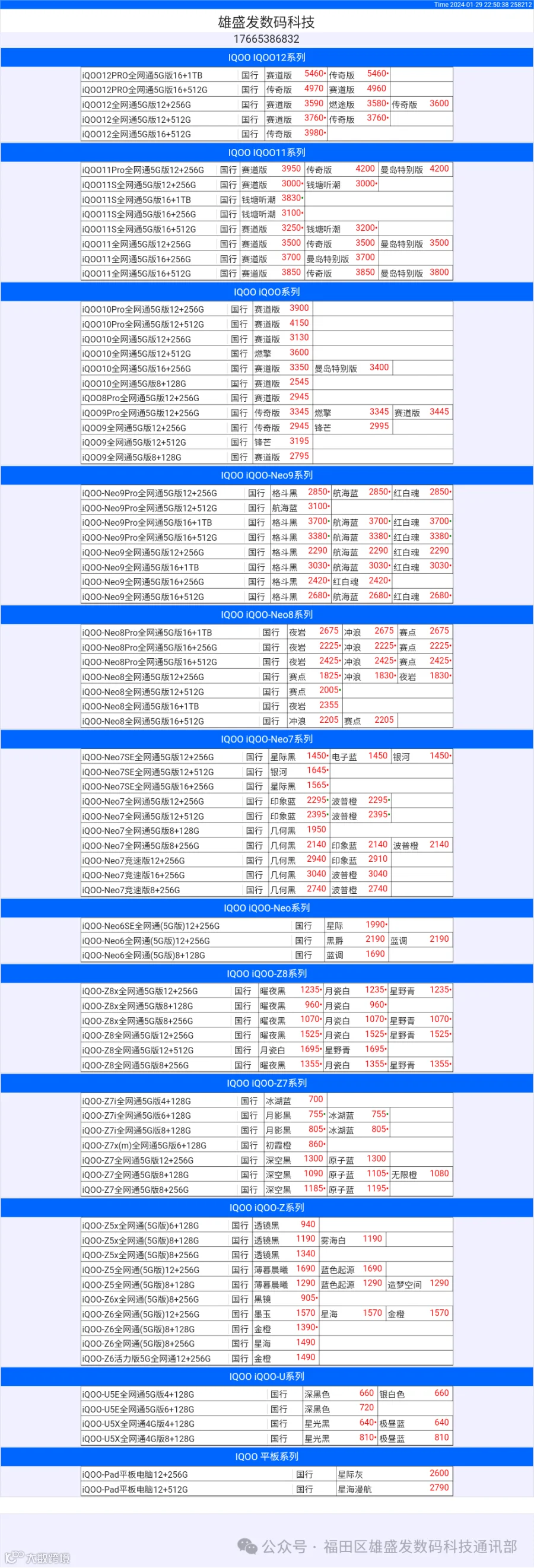 新机报价【2024年1月29日】OPPO   VIVO  IQOO   一加   真我 芯烨微 电子科技