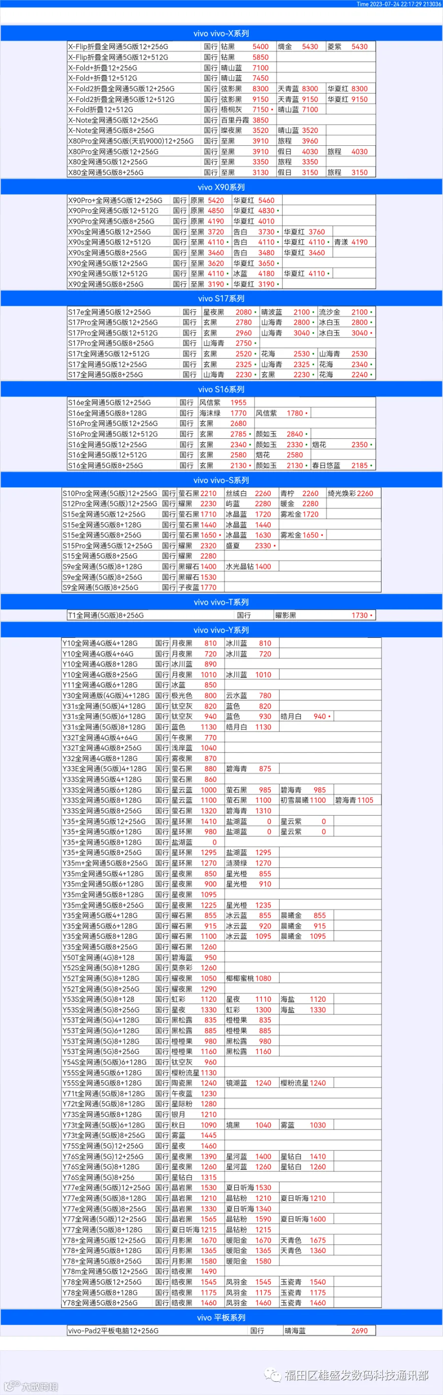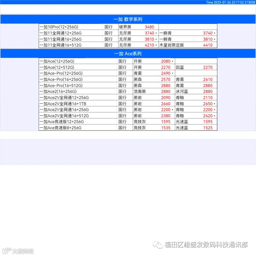 新机报价【2023年7月24日】OPPO   VIVO  IQOO   一加   真我 芯烨微 电子科技