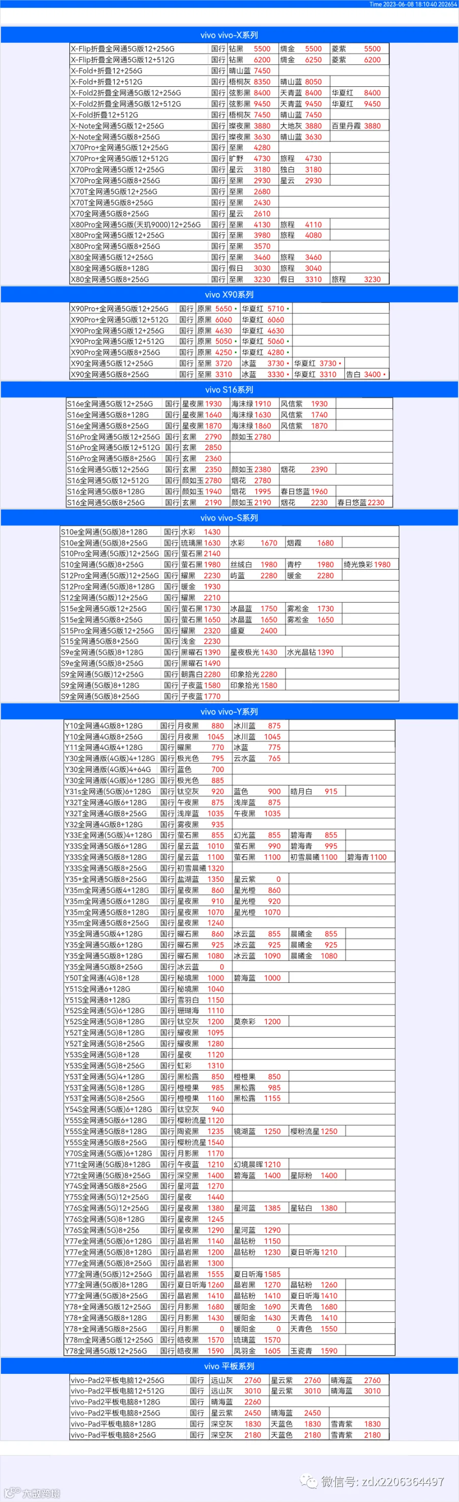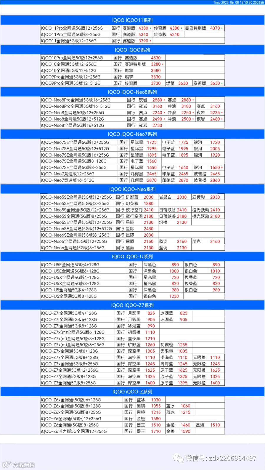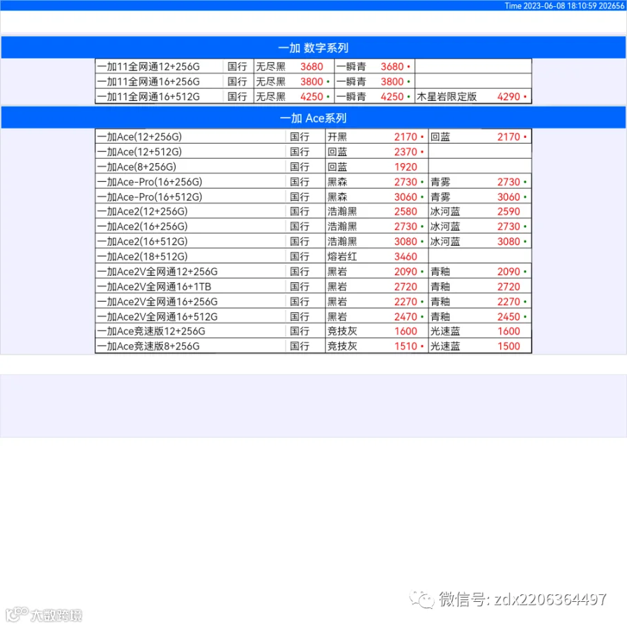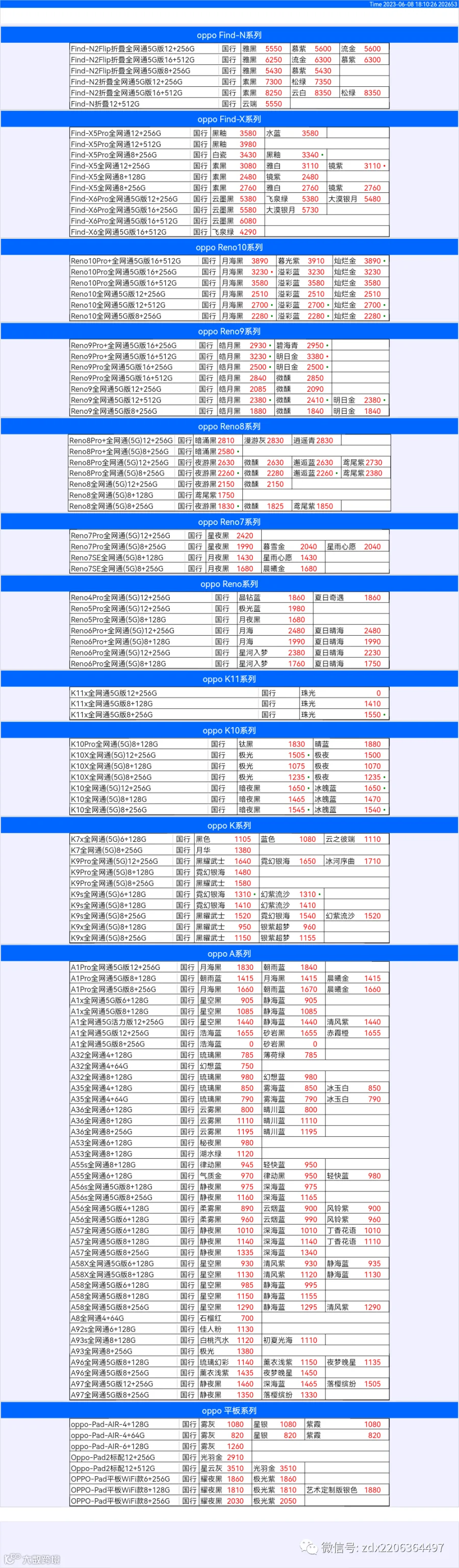 新机报价【2023年6月8日】OPPO   VIVO  IQOO   一加   真我 芯烨微 电子科技
