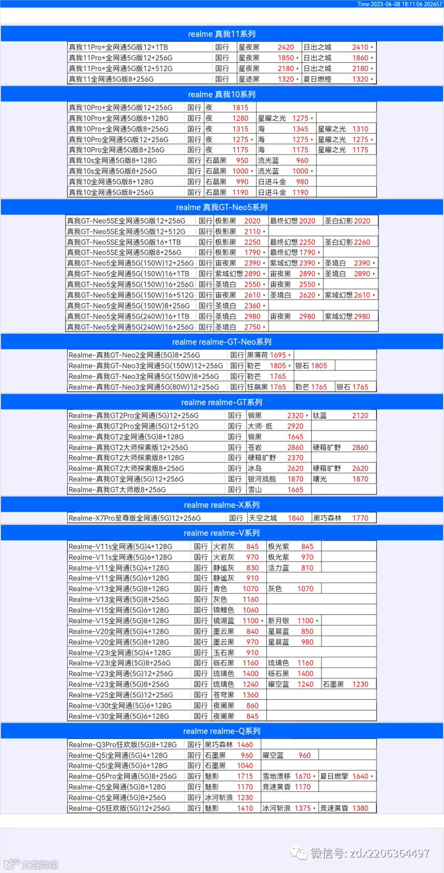 新机报价【2023年6月8日】OPPO VIVO IQOO 一加 真我