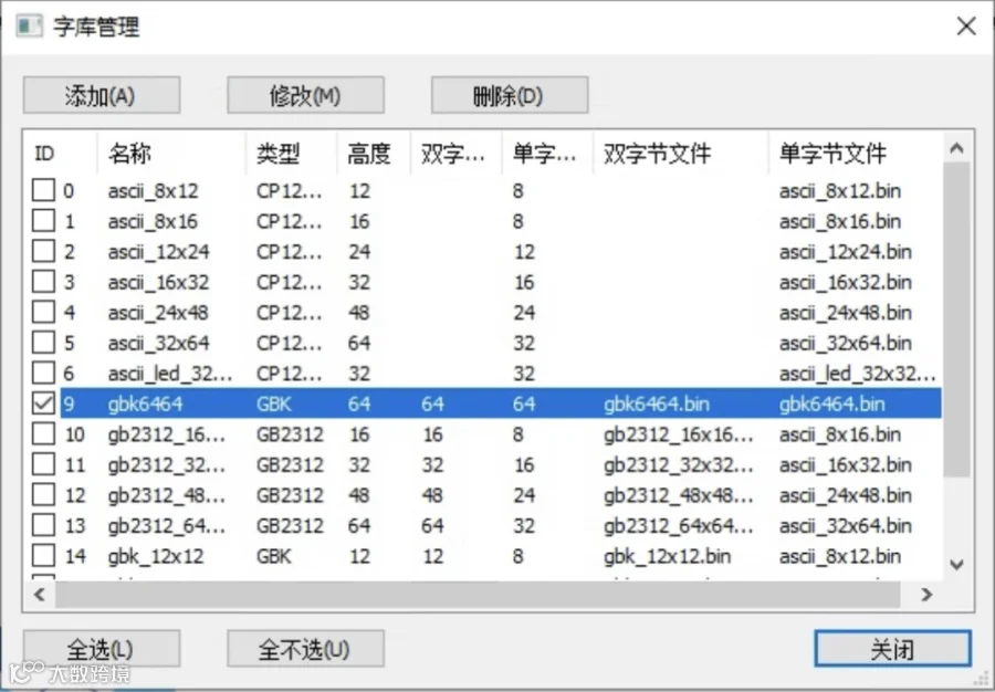返回工程界面,在属性-参数显示里,字体选择新添加的“gbk6464”
