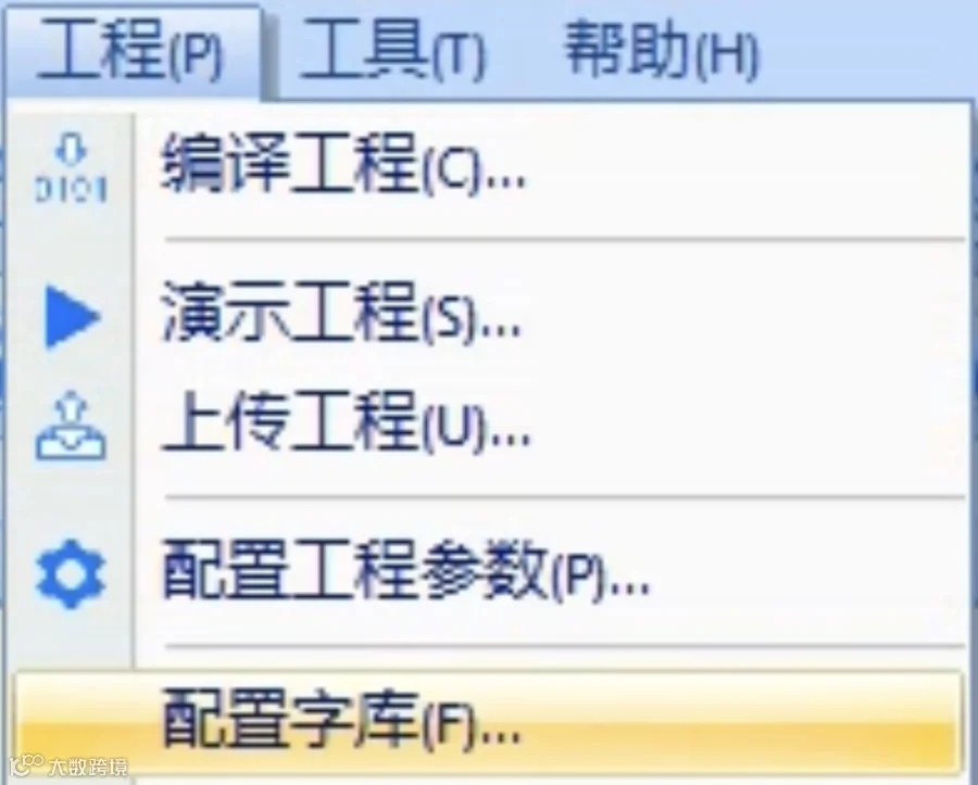 打开上位机工程,菜单栏“工程”选择“配置字库”