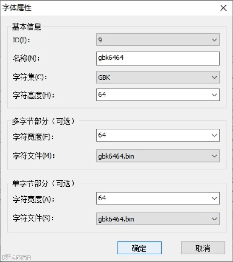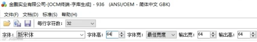 设置每行字符数,字体,字体宽等,根据需求设置字体,输出宽和高为64,字体高为64