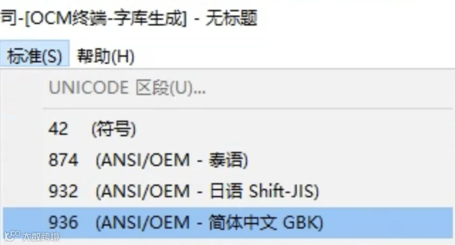打开字库生成软件,在菜单工具栏,点击标准,下拉列表是标准字库,选择简体中文“GBK”字库