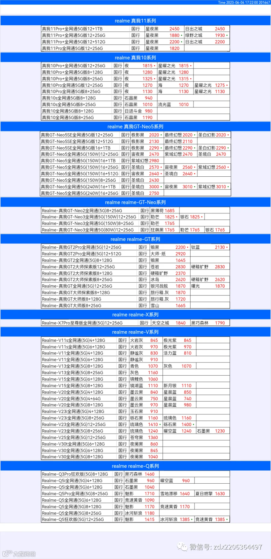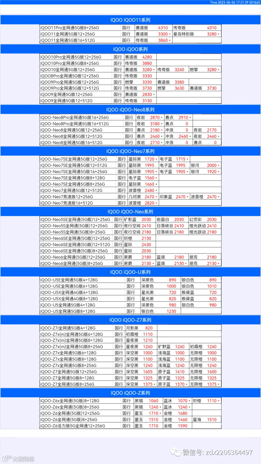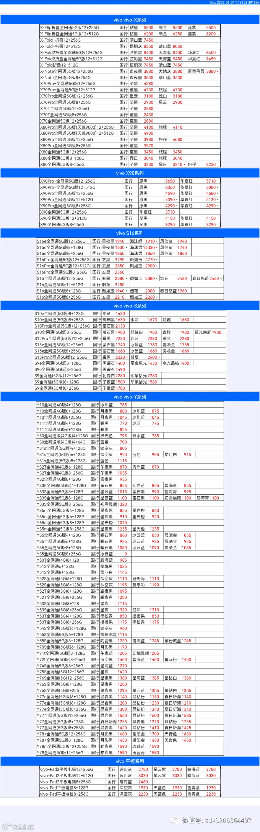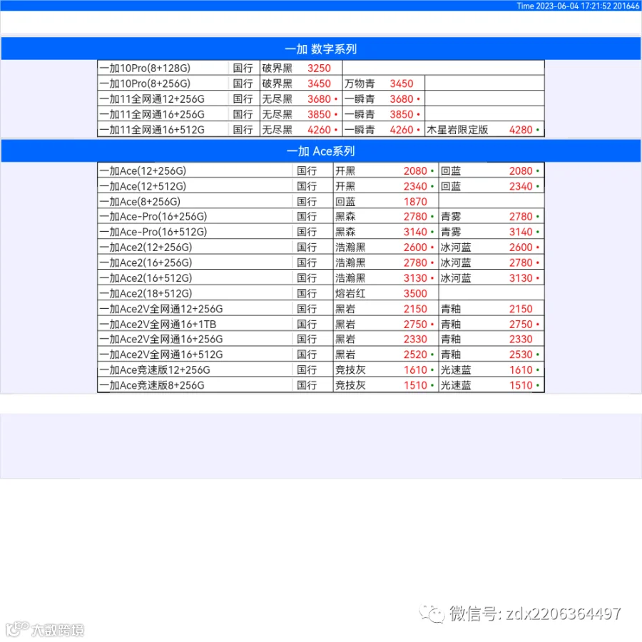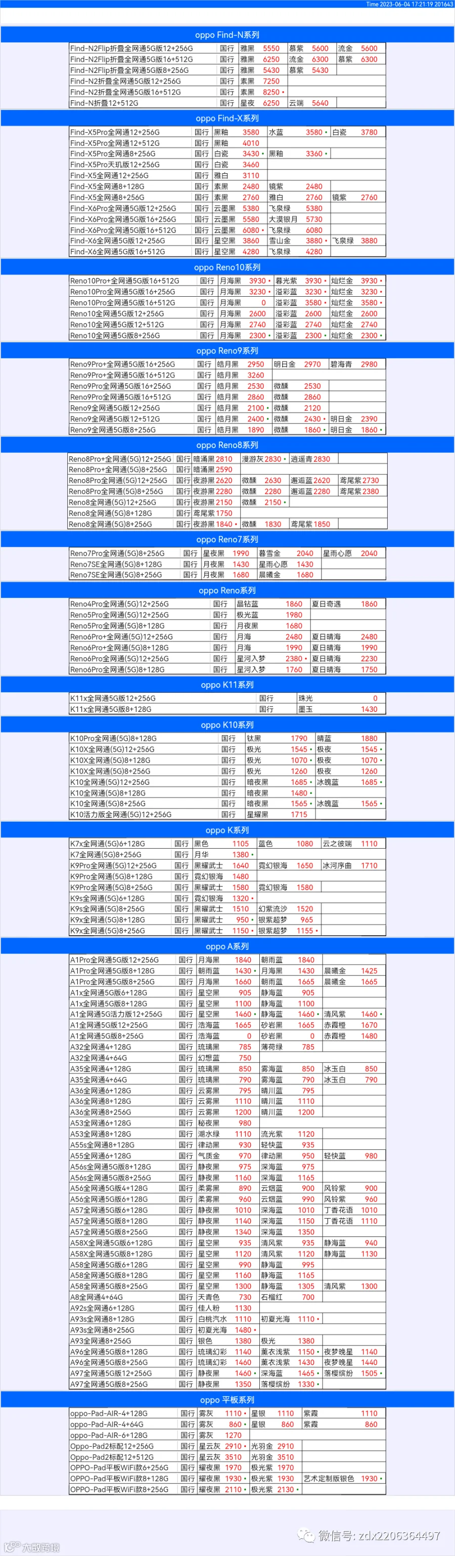 新机报价【2023年6月4日】OPPO   VIVO  IQOO   一加   真我 芯烨微 电子科技