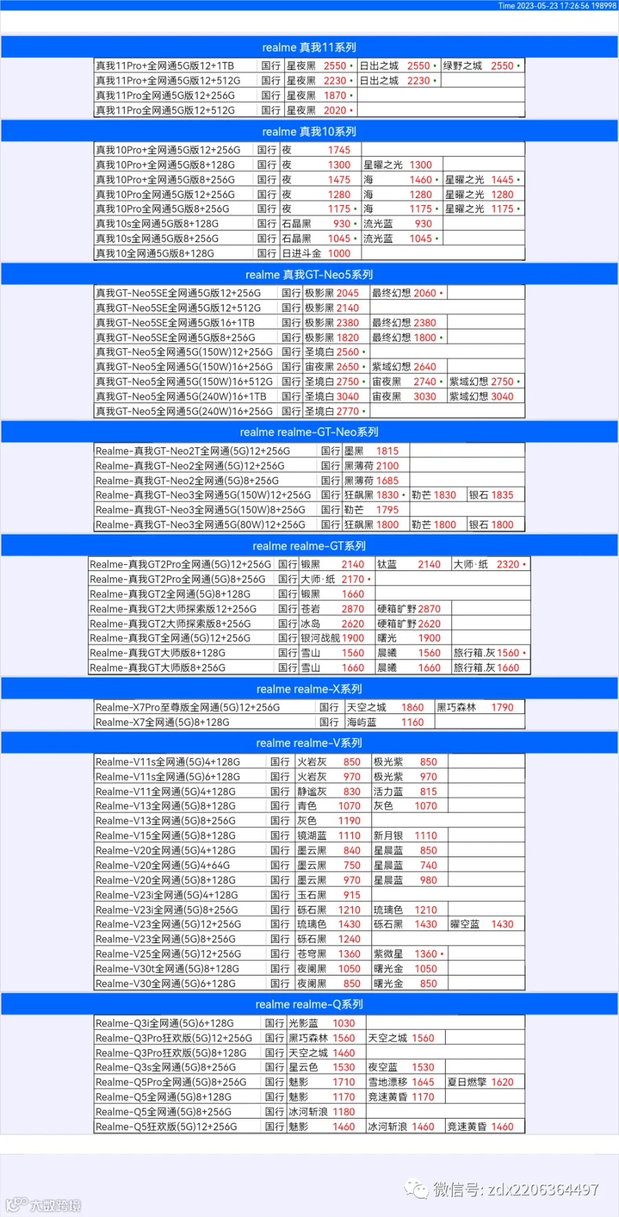 新机报价【2023年5月23日】OPPO VIVO IQOO 一加 真我