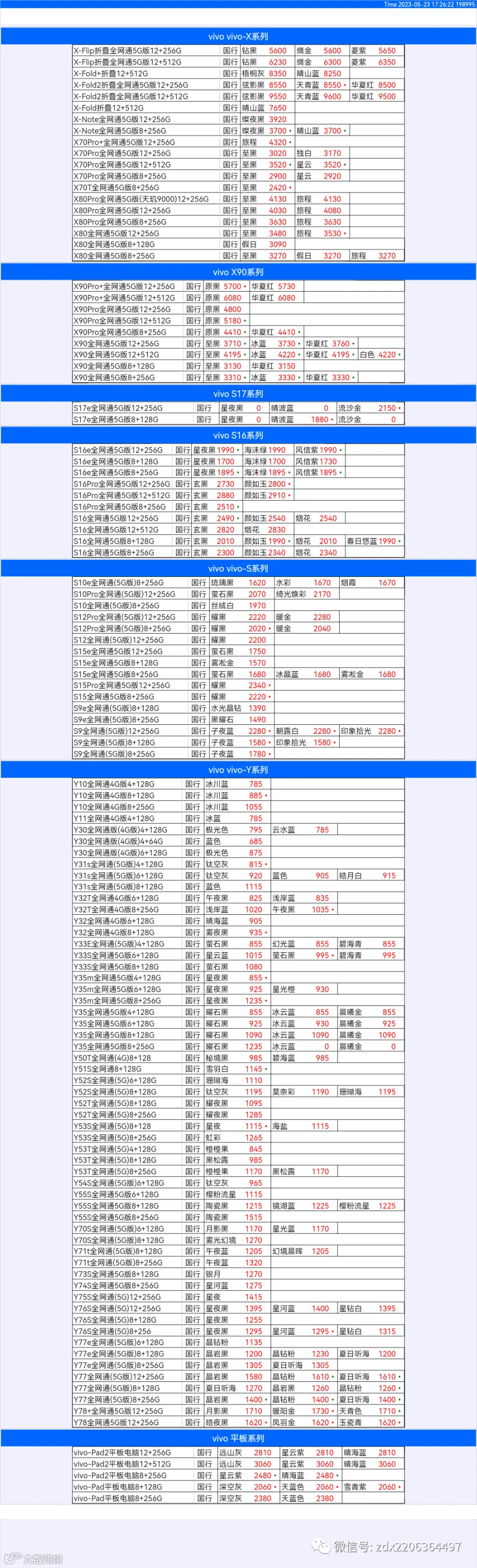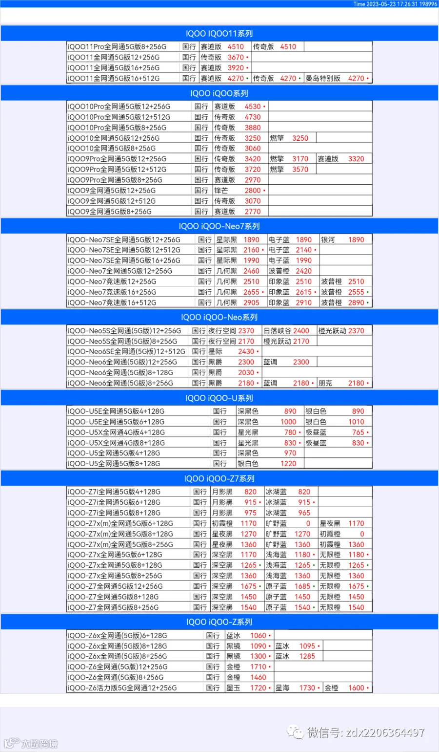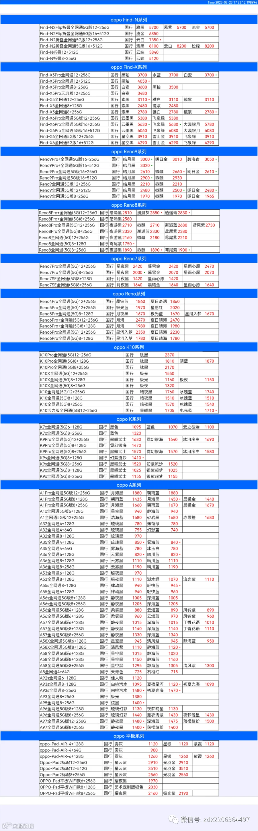 新机报价【2023年5月23日】OPPO   VIVO  IQOO   一加   真我 芯烨微 电子科技