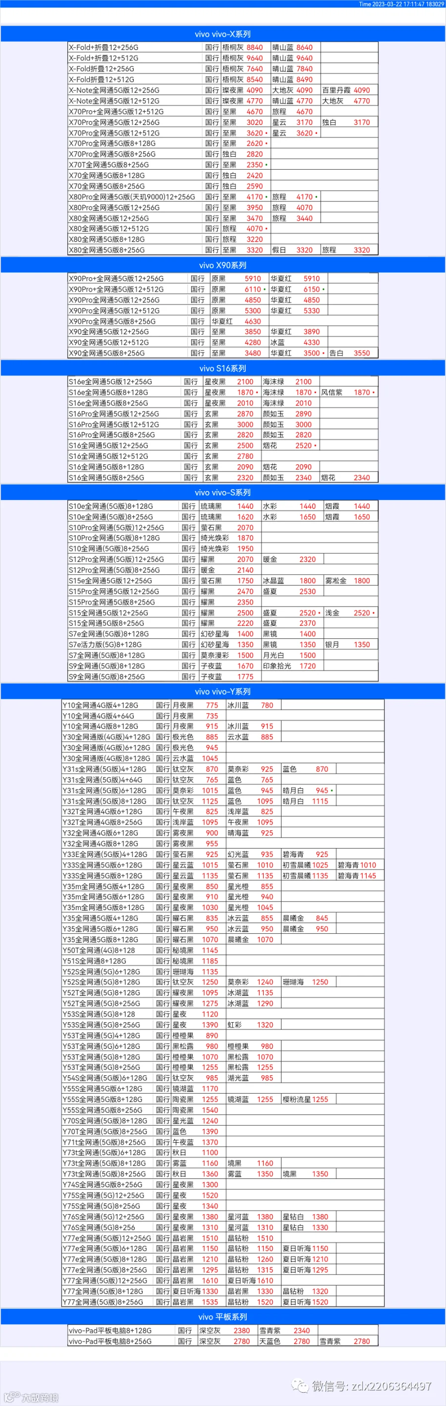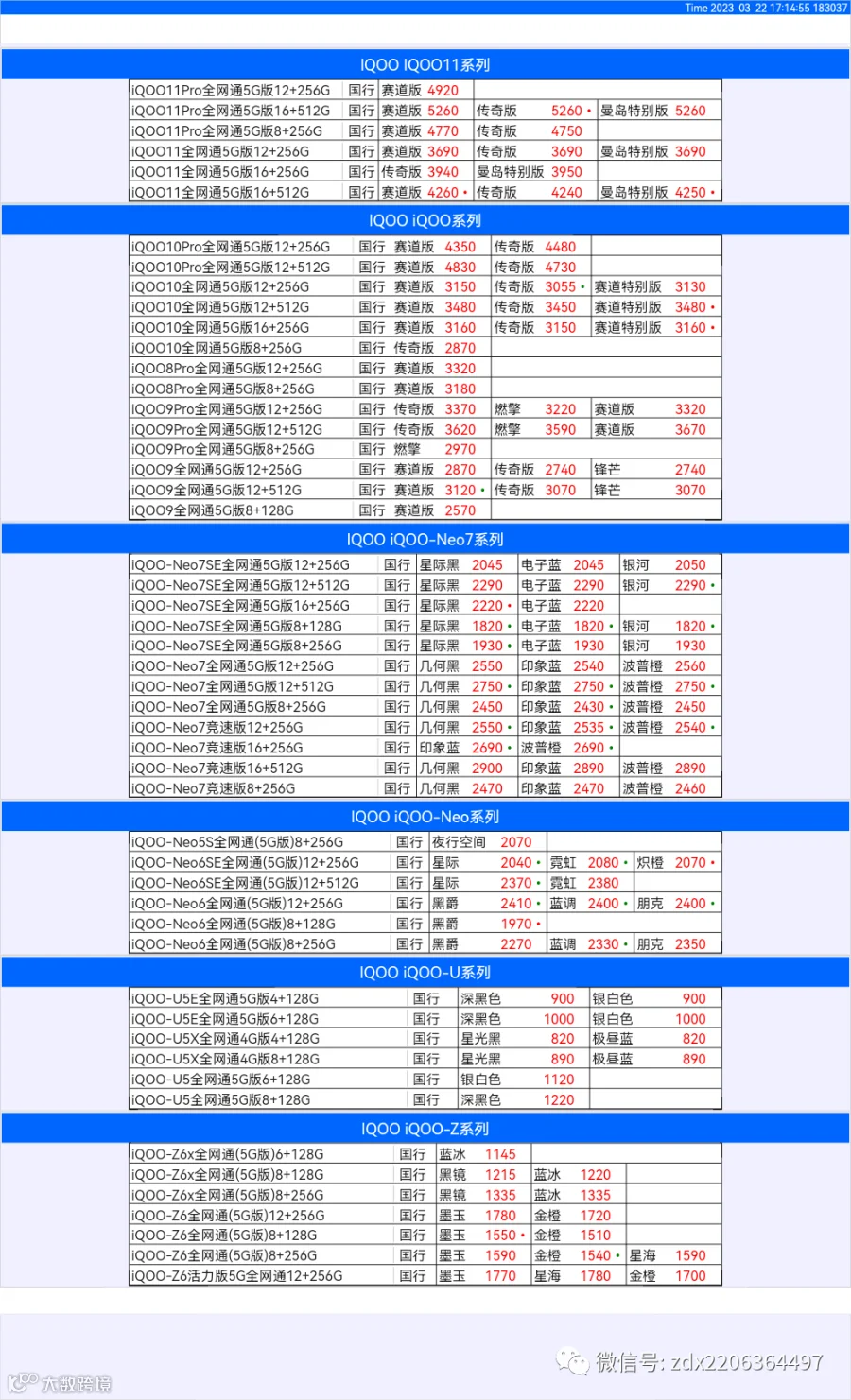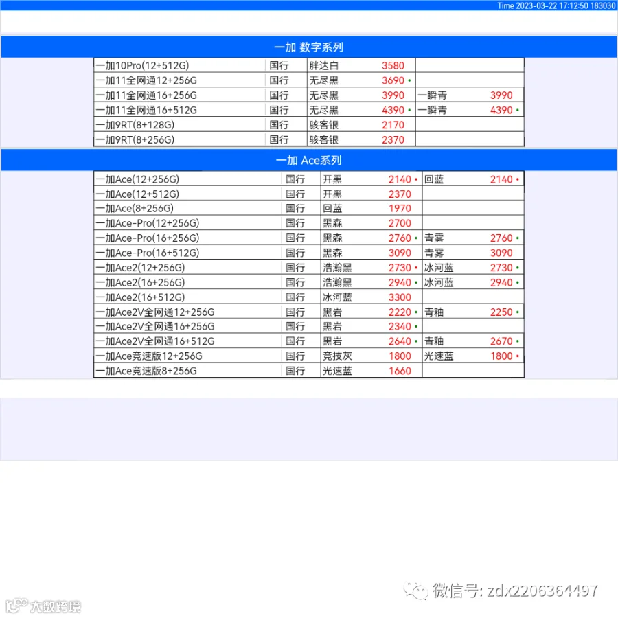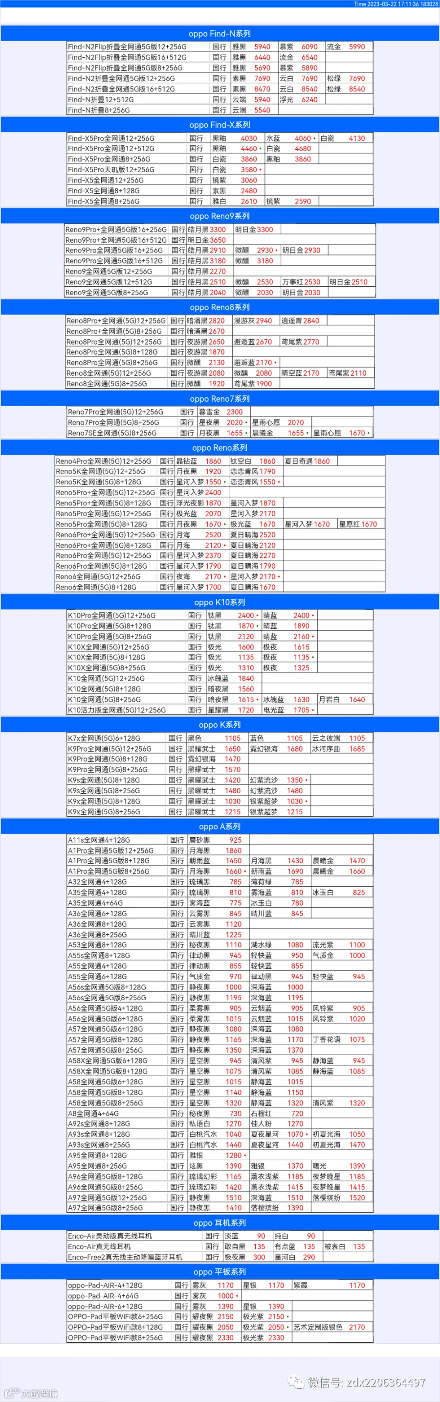 新机报价【2023年3月22日】OPPO   VIVO  IQOO   一加   真我 芯烨微 电子科技