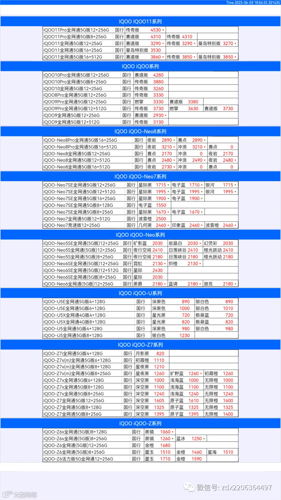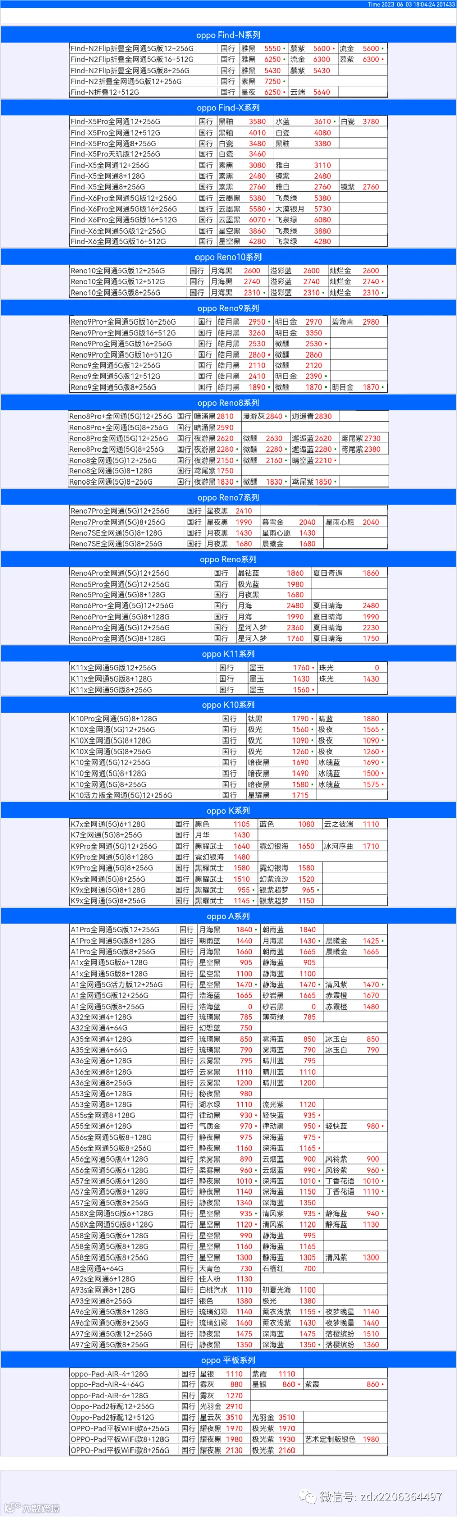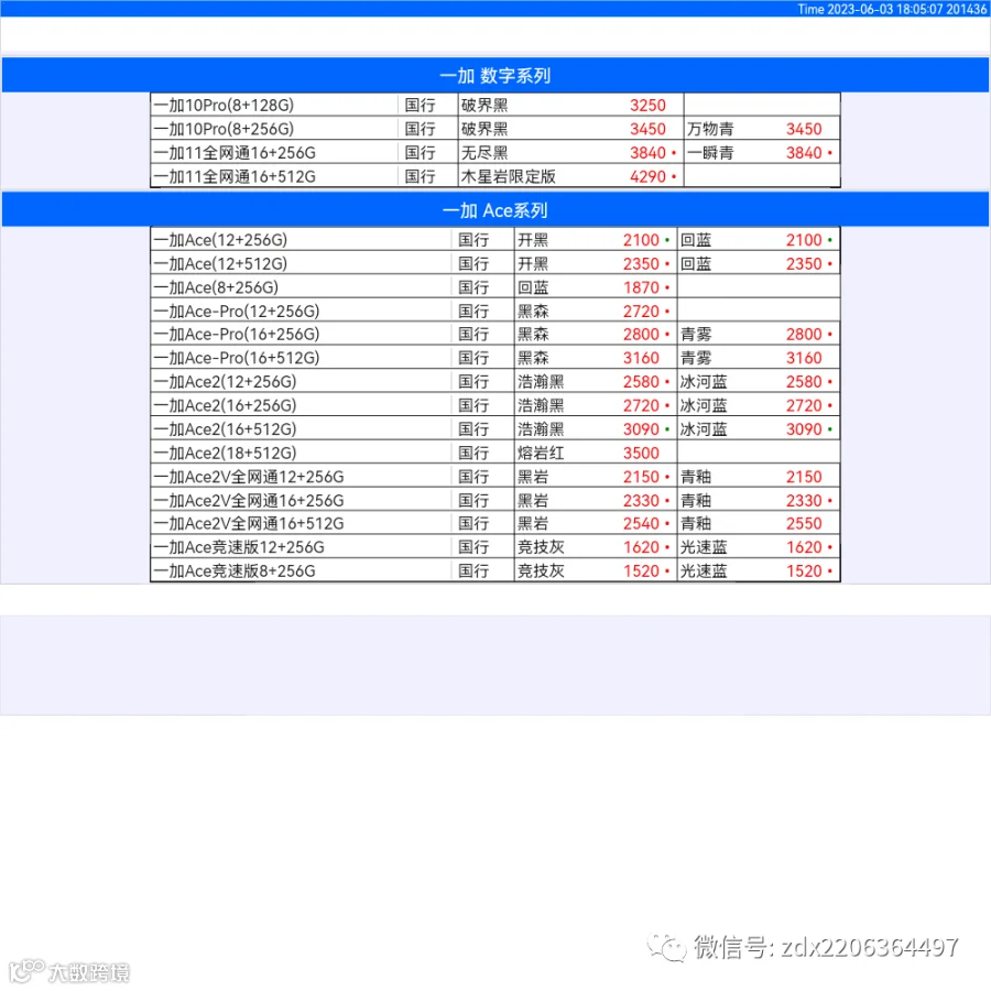 新机报价【2023年6月3日】OPPO   VIVO  IQOO   一加   真我 芯烨微 电子科技