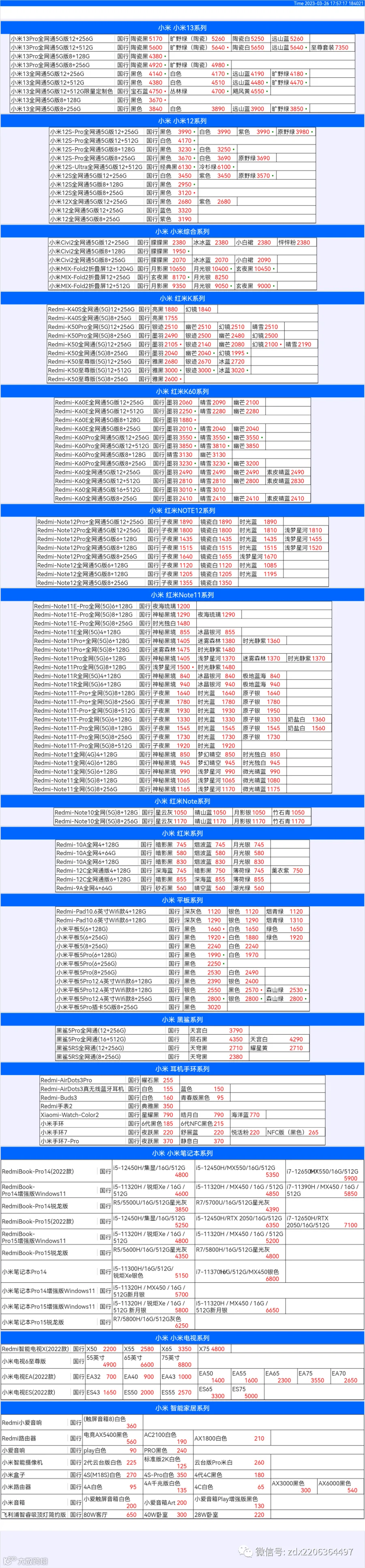 新机报价【2023年3月26日】小米  红米   黑鲨   报价 芯烨微 电子科技