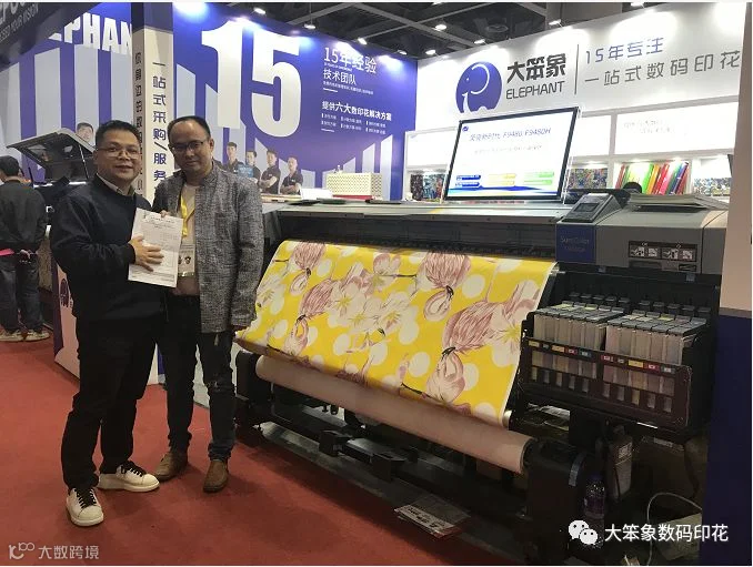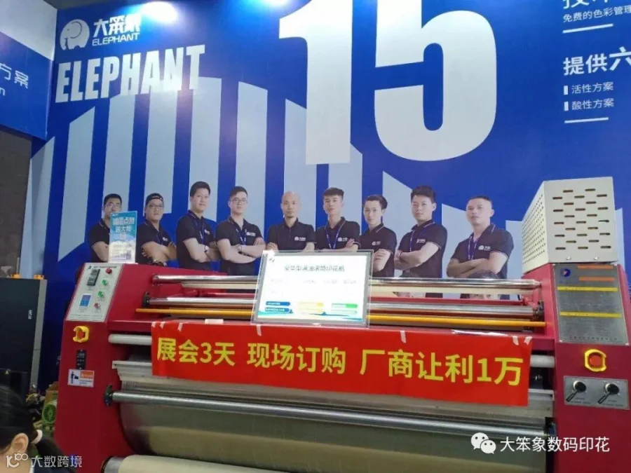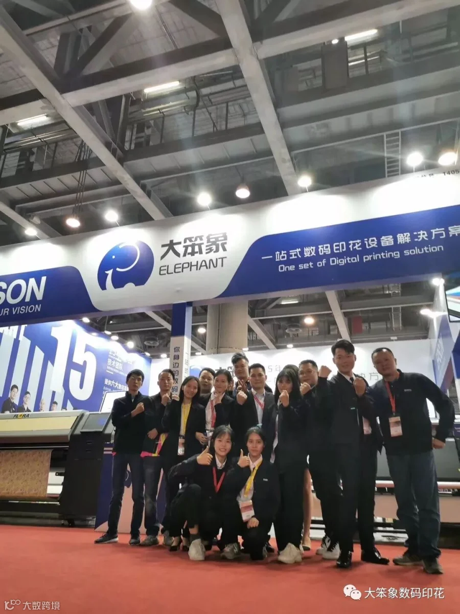 这次展会集合了新品展示、专业研讨及供需配对、洽谈交流服务相互融合,汇聚行业力量,共同演绎了数码印花、丝网印刷、个性定制行业年度盛会。3万人次观众现场采购洽谈,20万+人次在线观展,构成一帧帧美丽的画卷。而“大笨象”家族也是全员上阵,为大家提供了热转印方案、荧光墨方案和直喷方案的布料展示,实时实地看到产品打印效果,为大家带来高效、稳定的新产品。