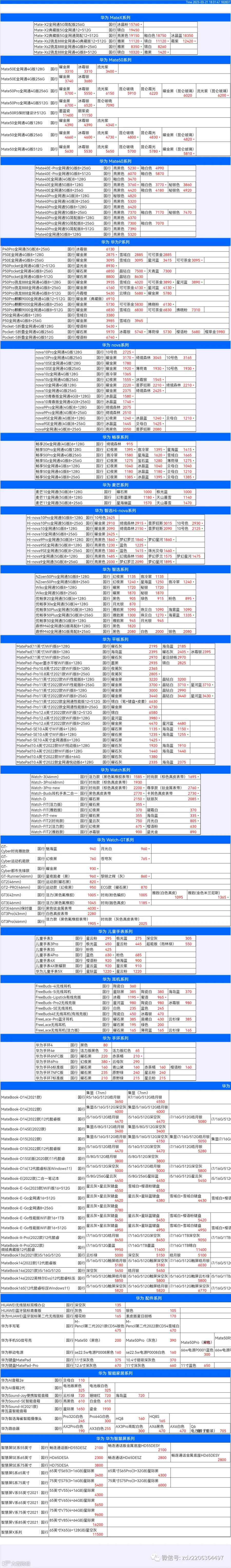 新机报价【2023年3月21日】华为   荣耀 报价 芯烨微 电子科技