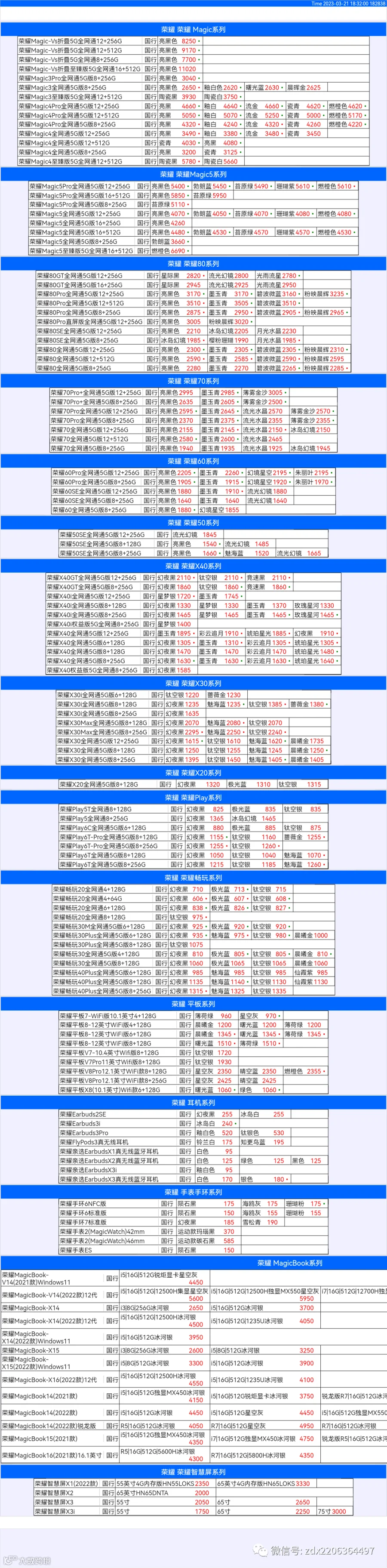 新机报价【2023年3月21日】华为 荣耀 报价