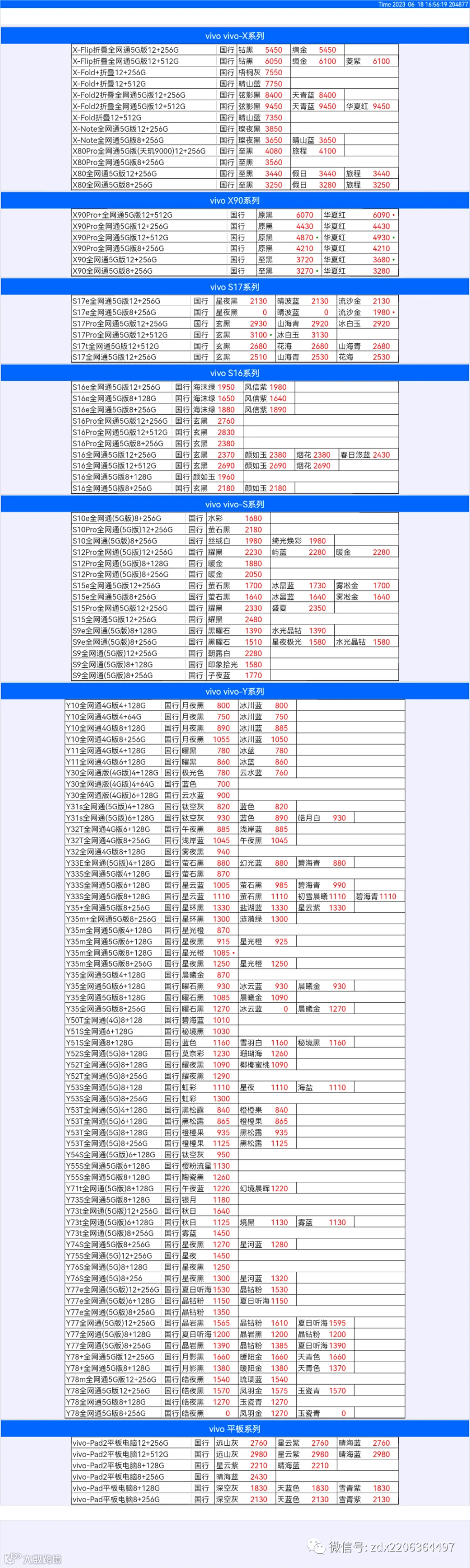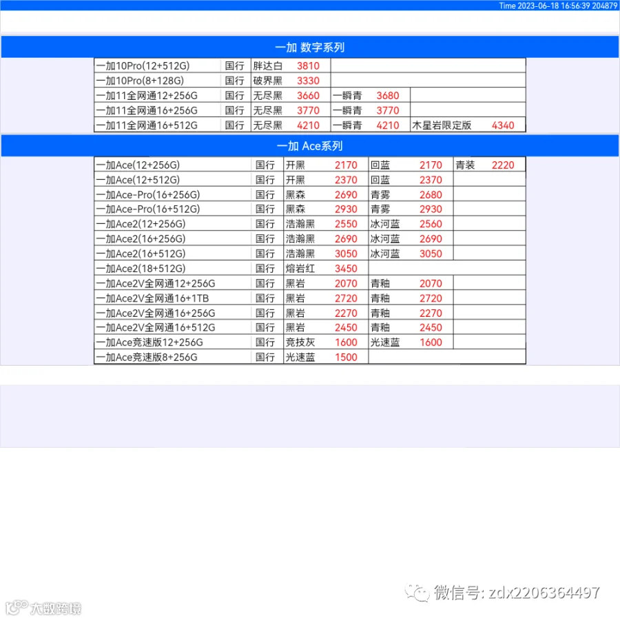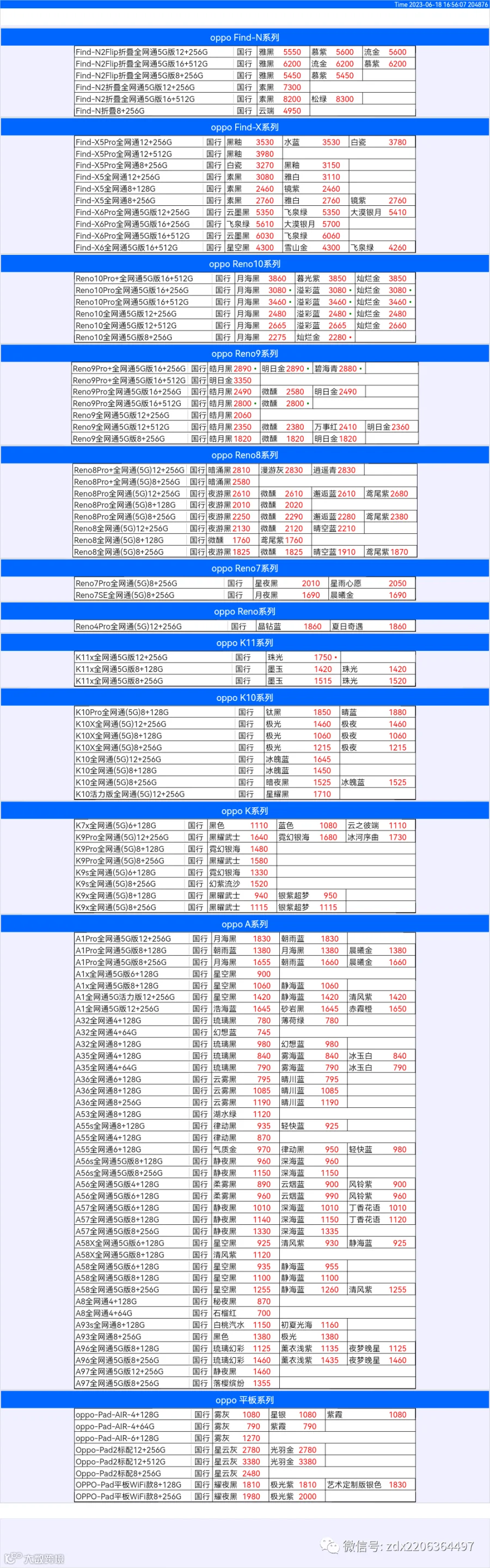 新机报价【2023年6月18日】OPPO   VIVO  IQOO   一加   真我 芯烨微 电子科技