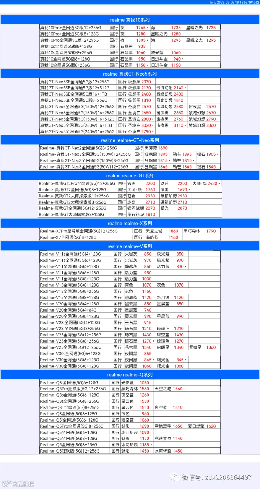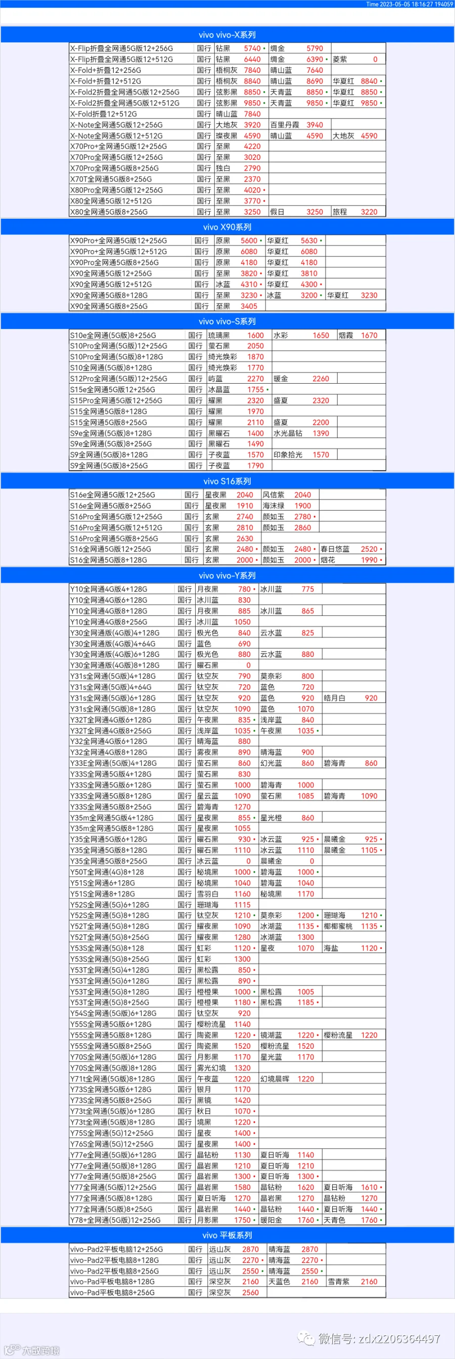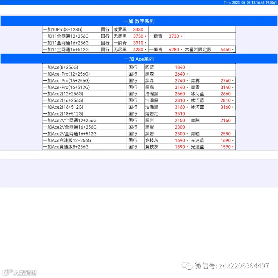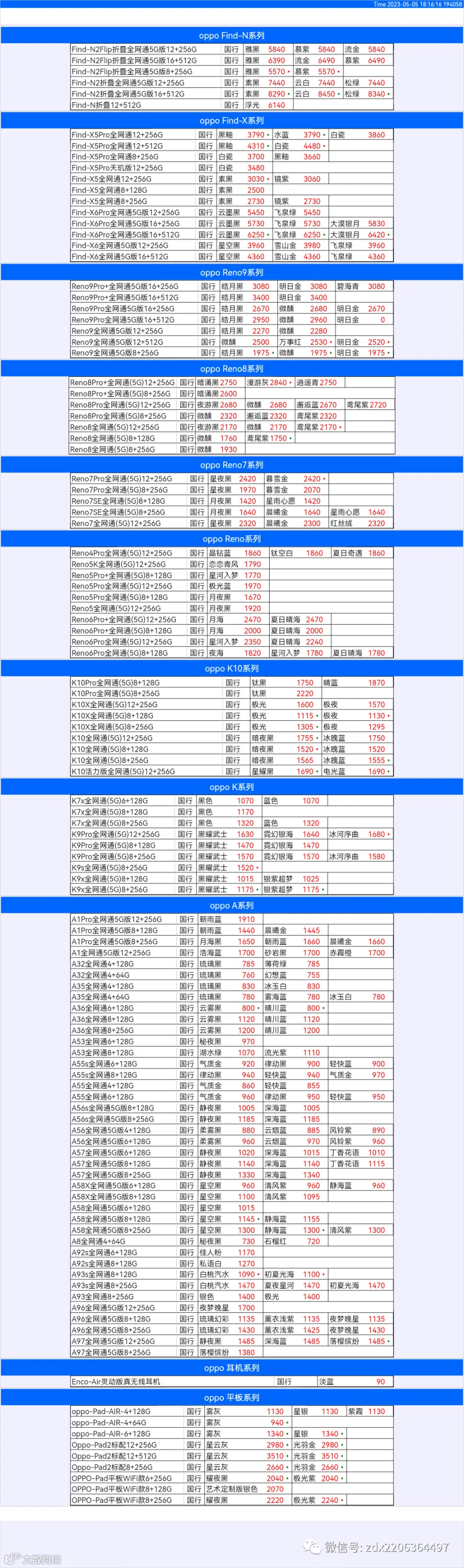 新机报价【2023年5月5日】OPPO   VIVO  IQOO   一加   真我 芯烨微 电子科技