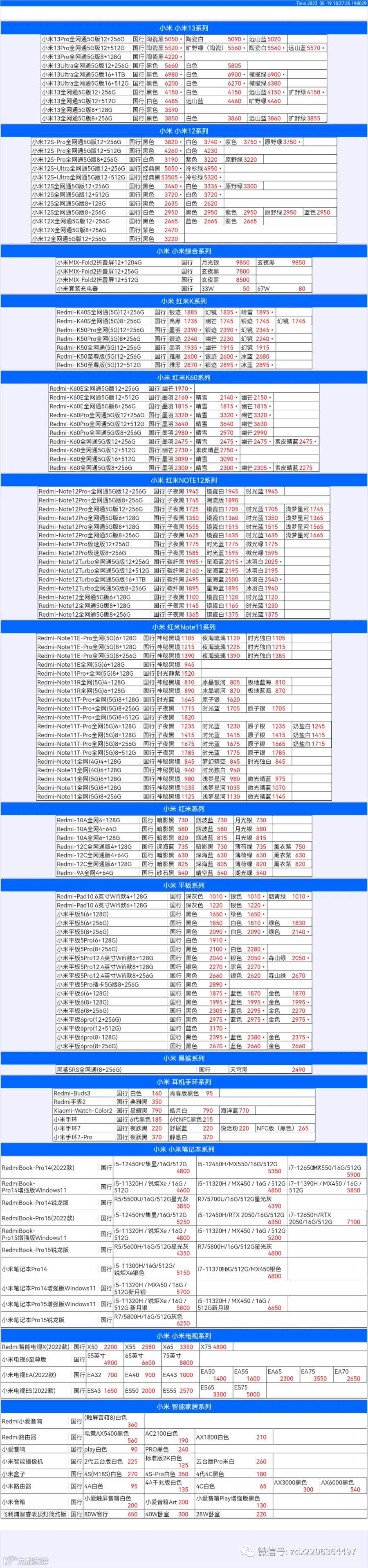 新机报价【2023年5月19日】小米  红米   黑鲨   报价 芯烨微 电子科技
