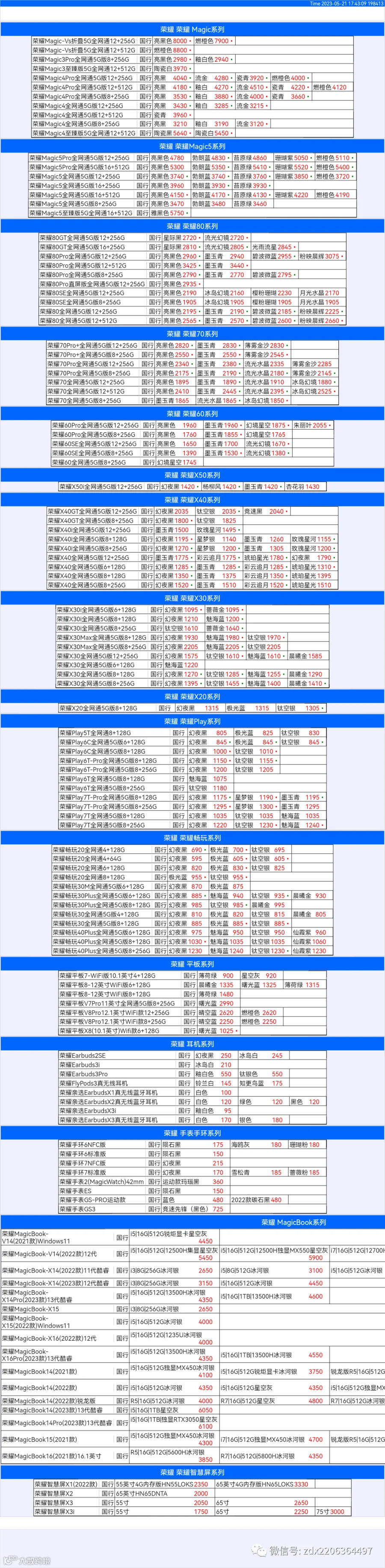 新机报价【2023年5月21日】华为   荣耀 报价 芯烨微 电子科技