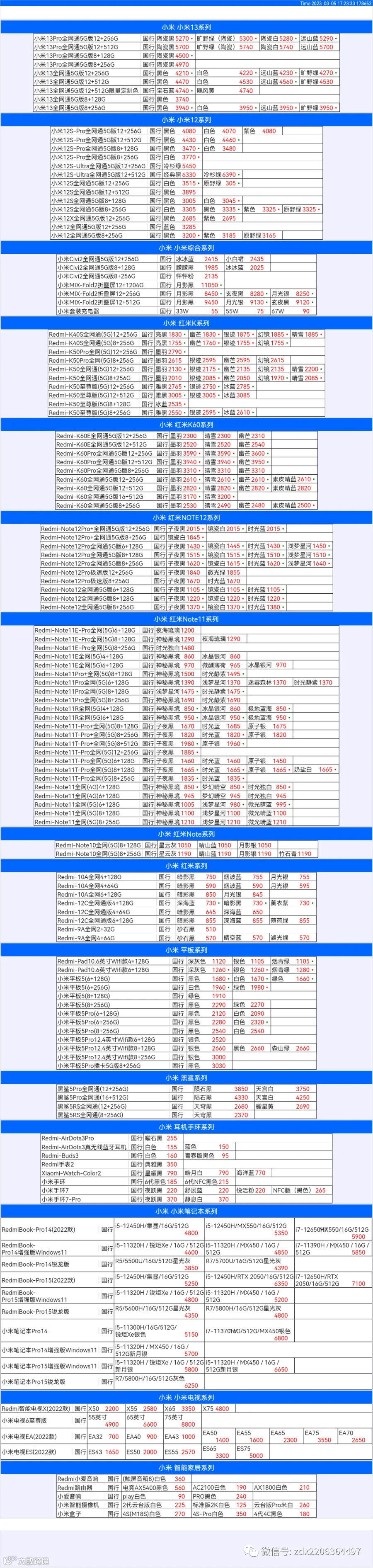 新机报价【2023年3月5日】小米  红米   黑鲨   报价 芯烨微 电子科技